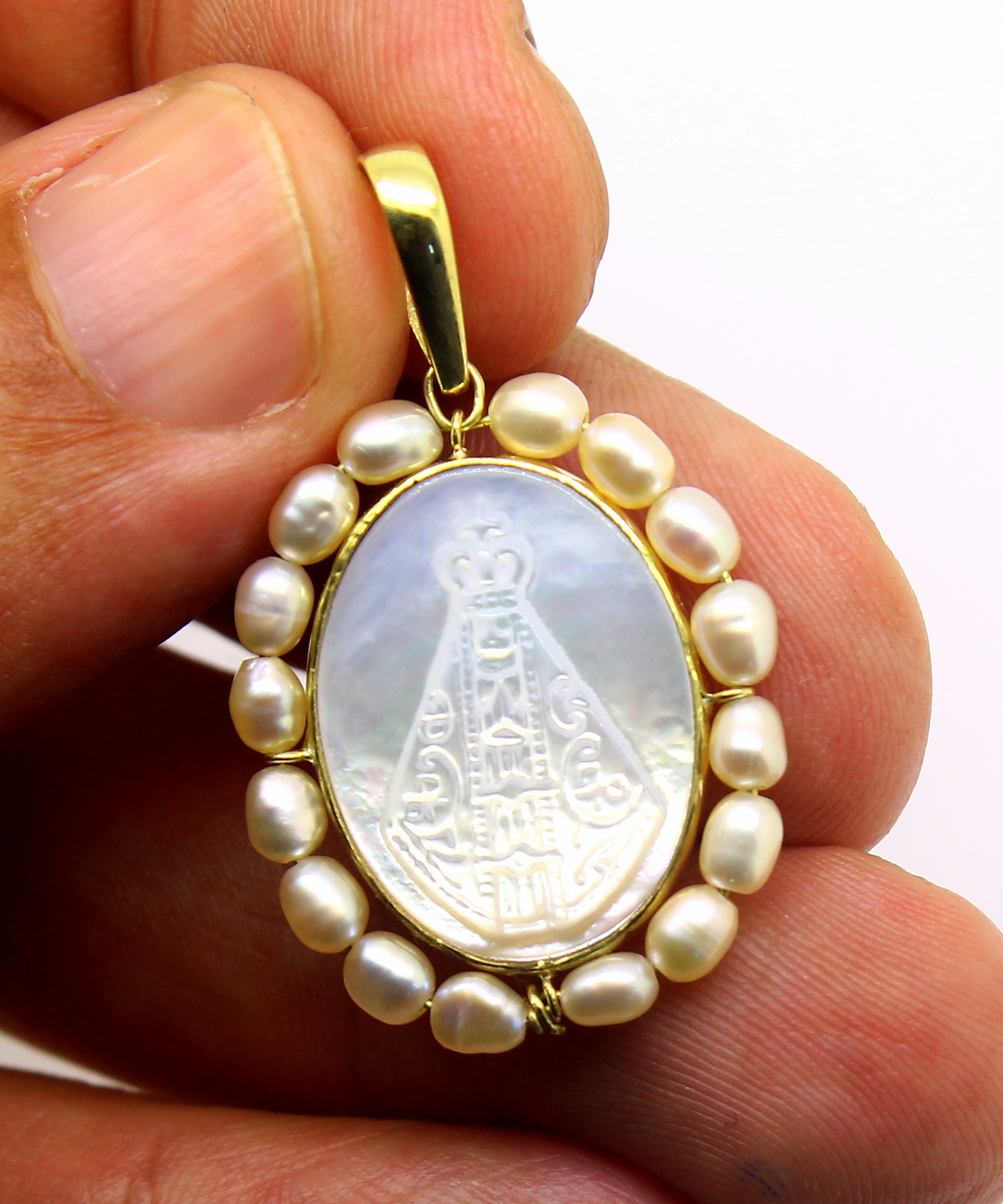 Medalha N. Sra. Aparecida Madrepérola Ouro 18k