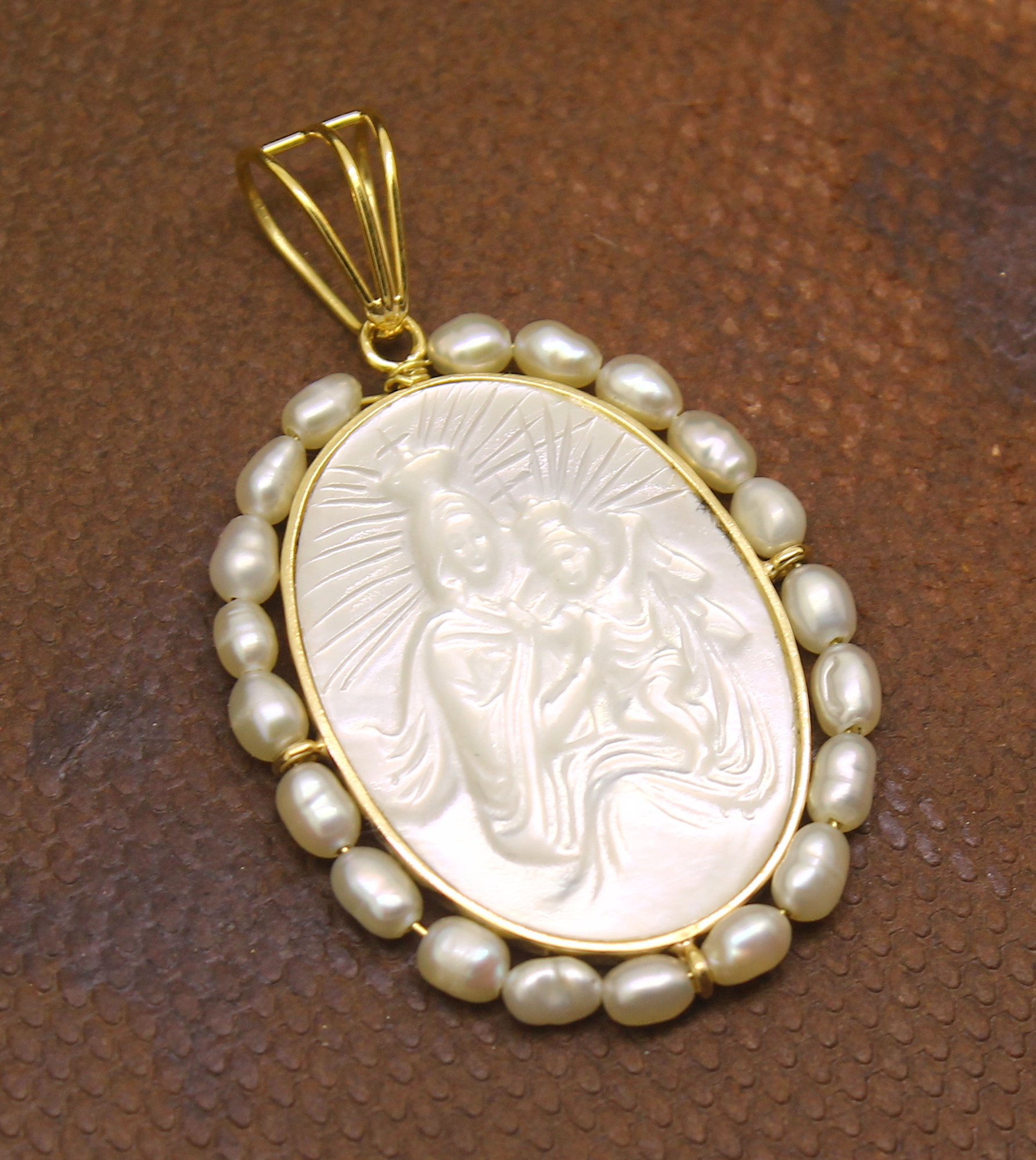 Medalha N. Sra. do Carmo Madrepérola Ouro 18k