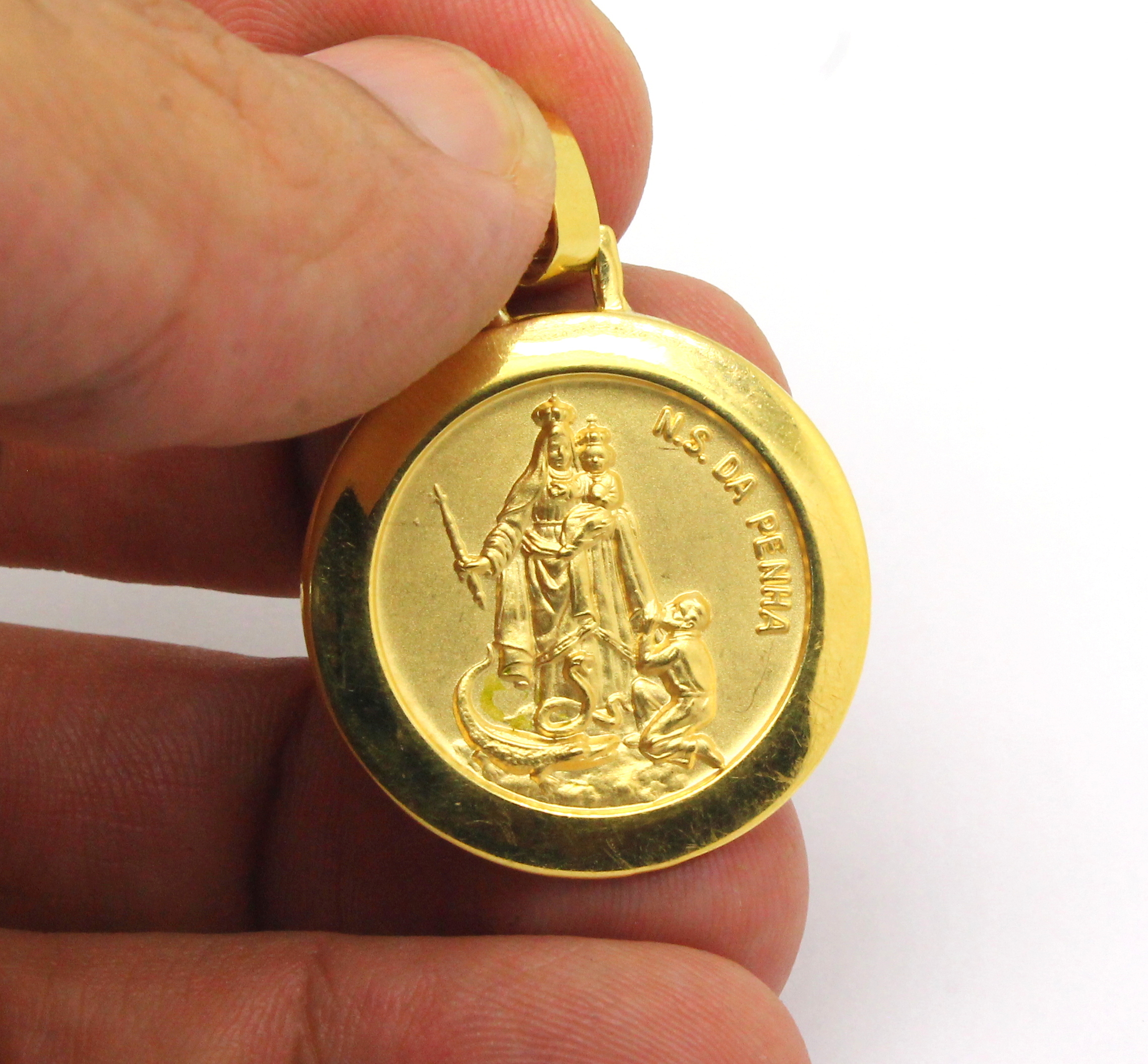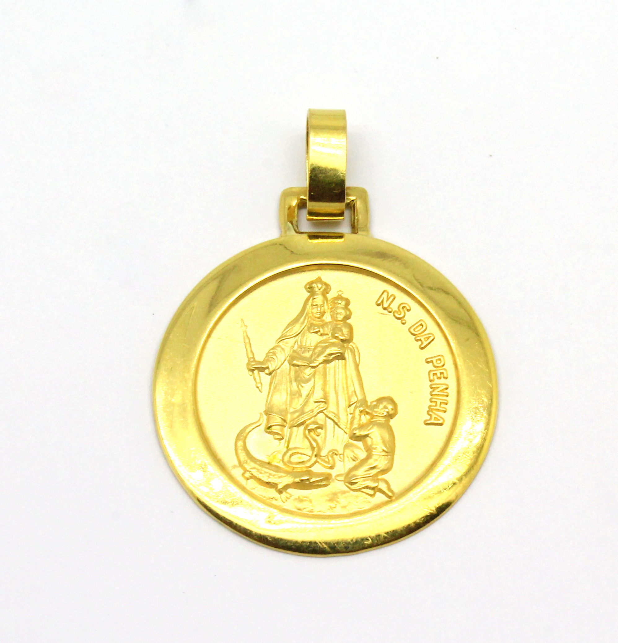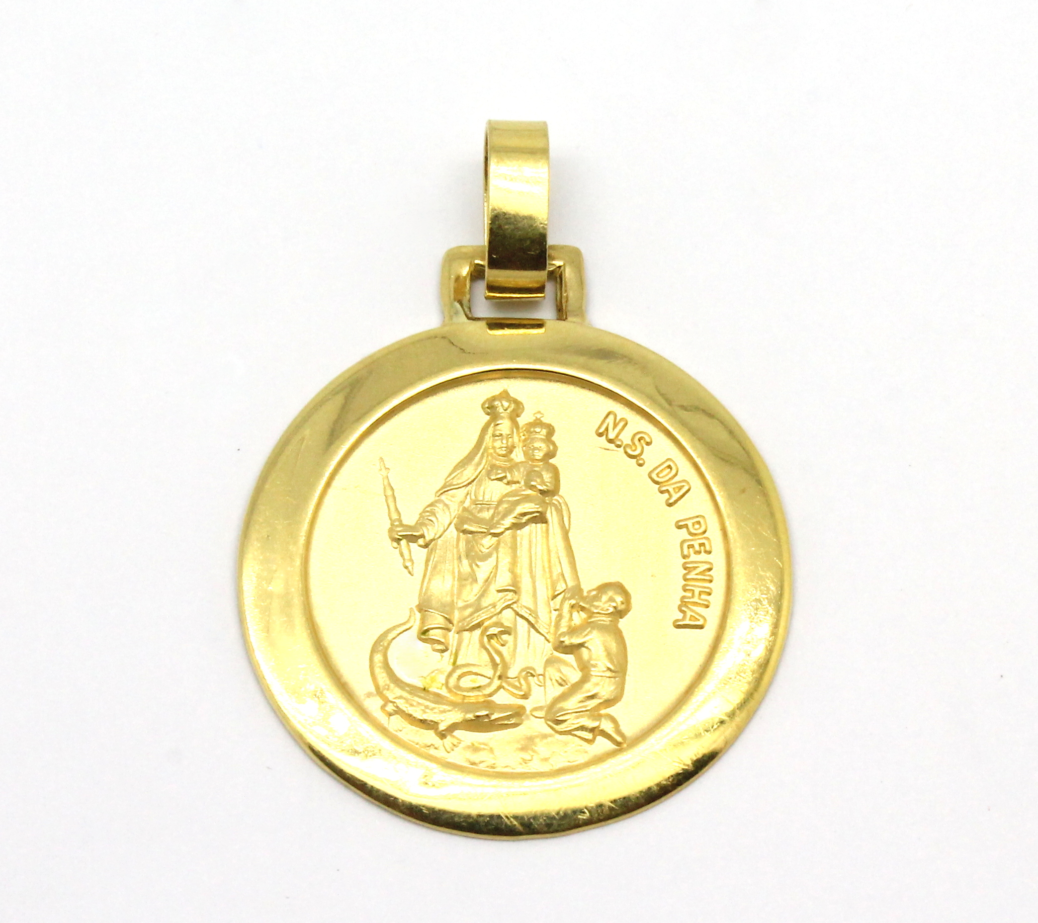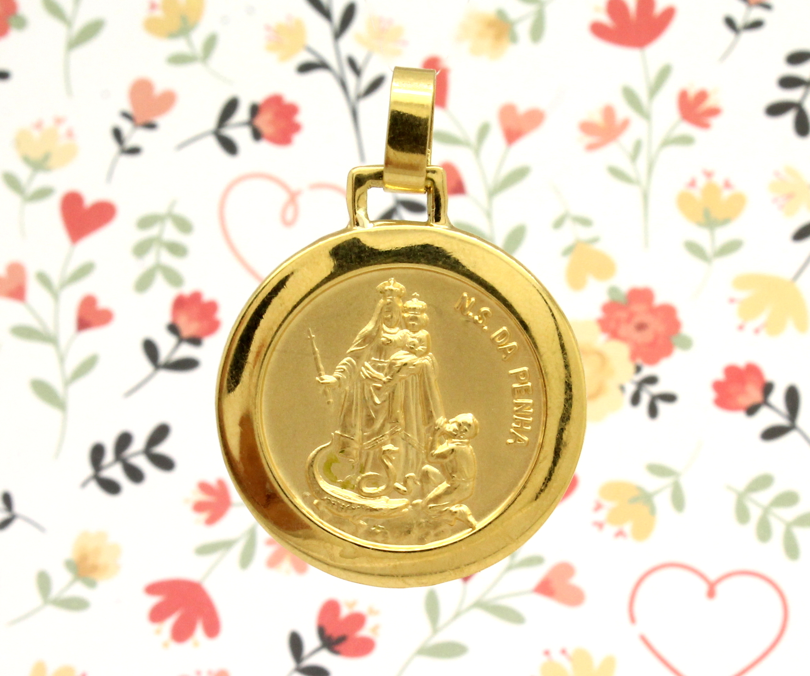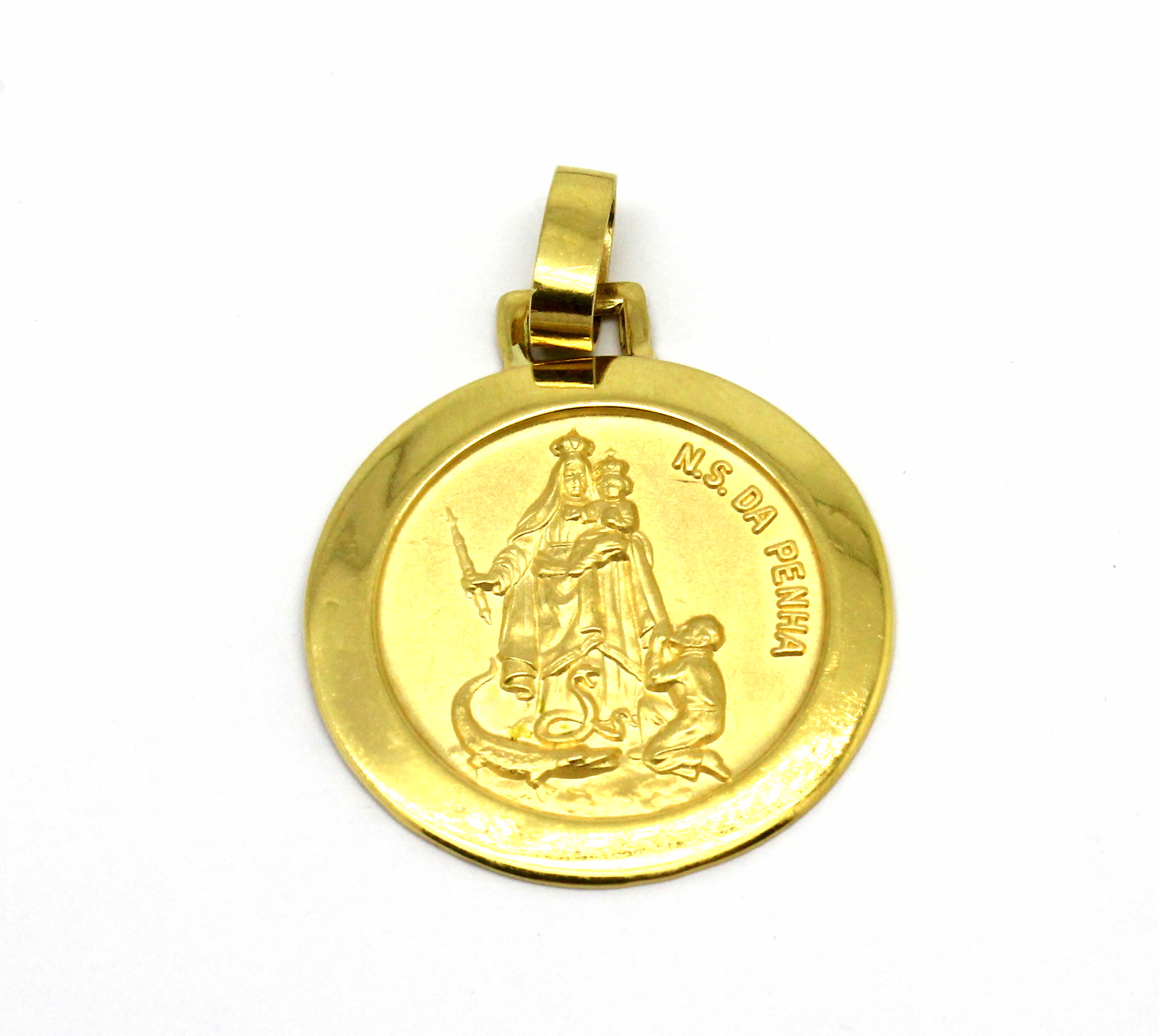 Medalha Nossa Senhora da Penha Redonda Ouro 18k 750