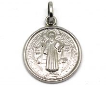 A medalha de São Bento foi esculpida primeiramente nas colunas do mosteiro de Monte Cassino. Na frente da medalha lê-se: Ejus in ibitu nostro praesentia muniamur. Sejamos protegidos pela sua presença na hora da nossa morte.