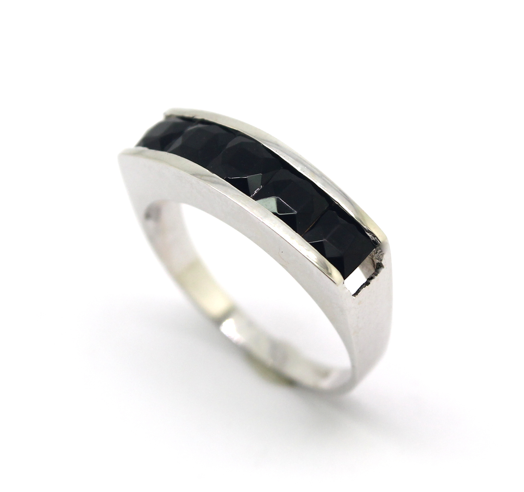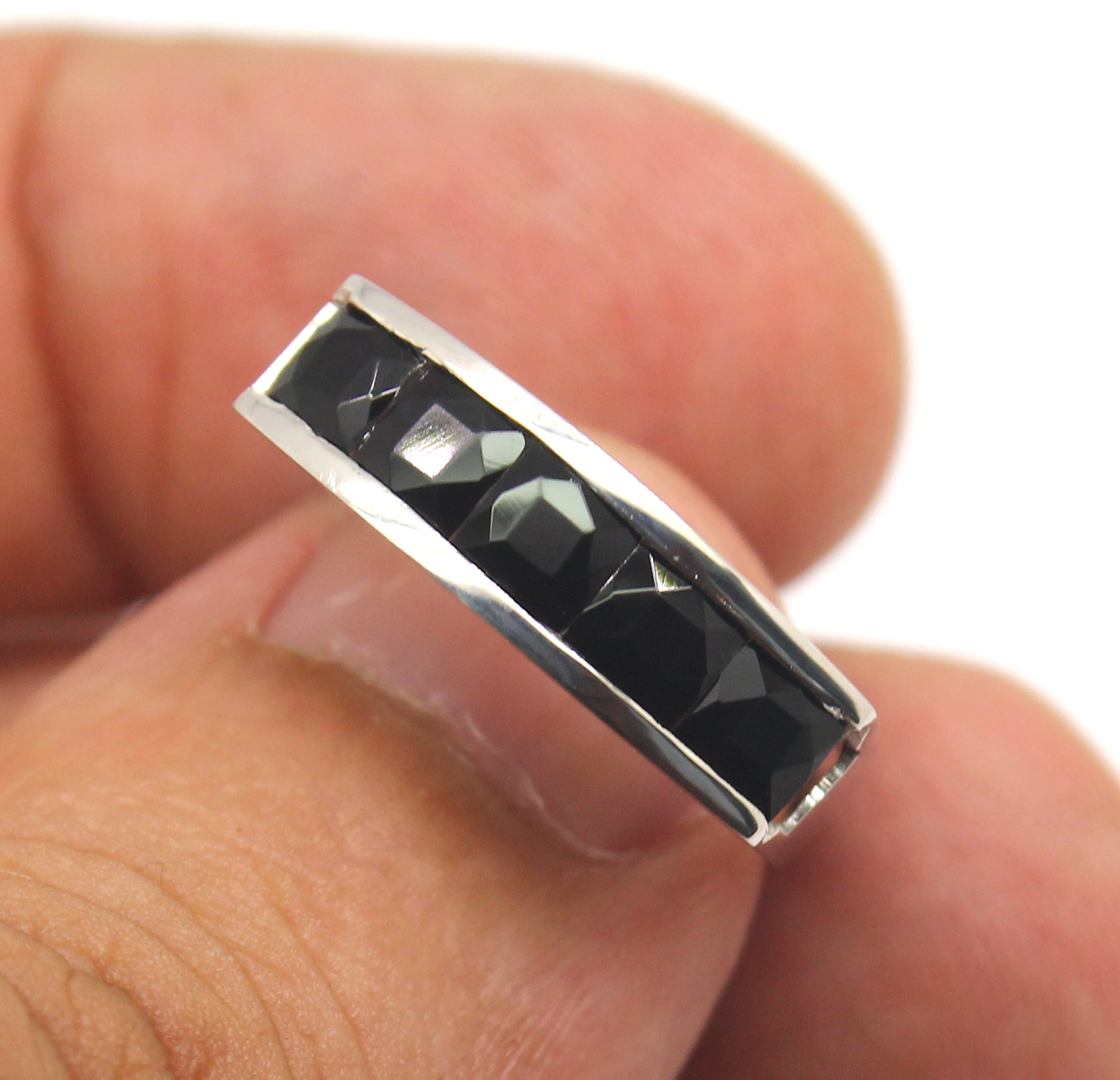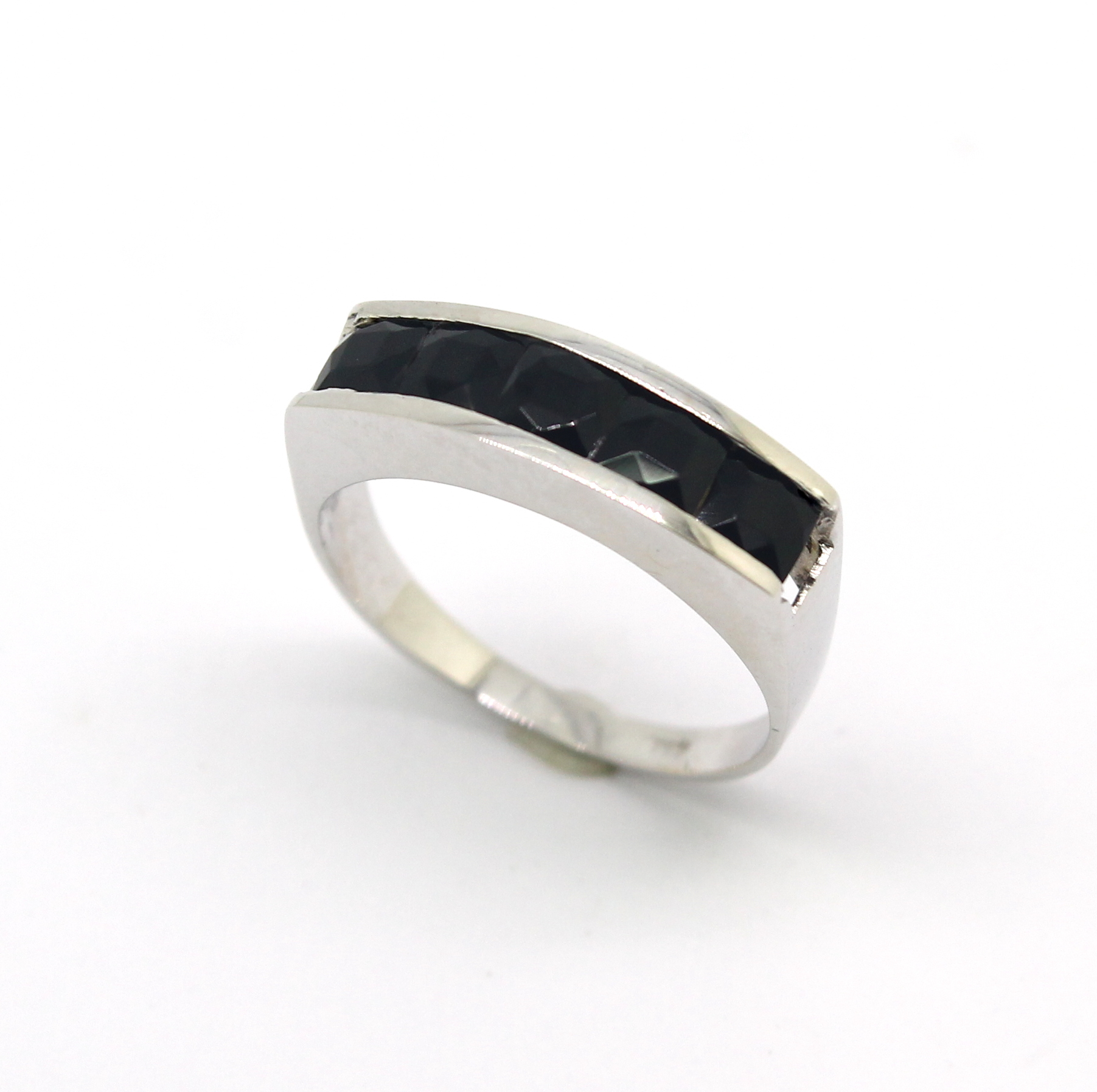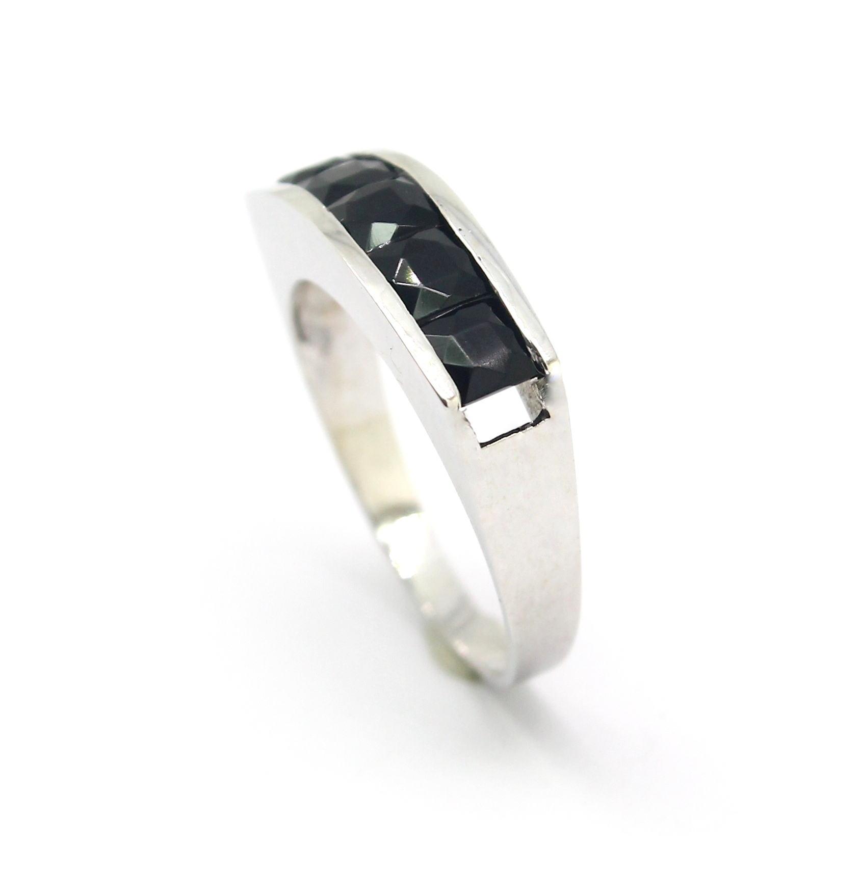 Meia Aliança de Ônix Ouro Branco 18k 750