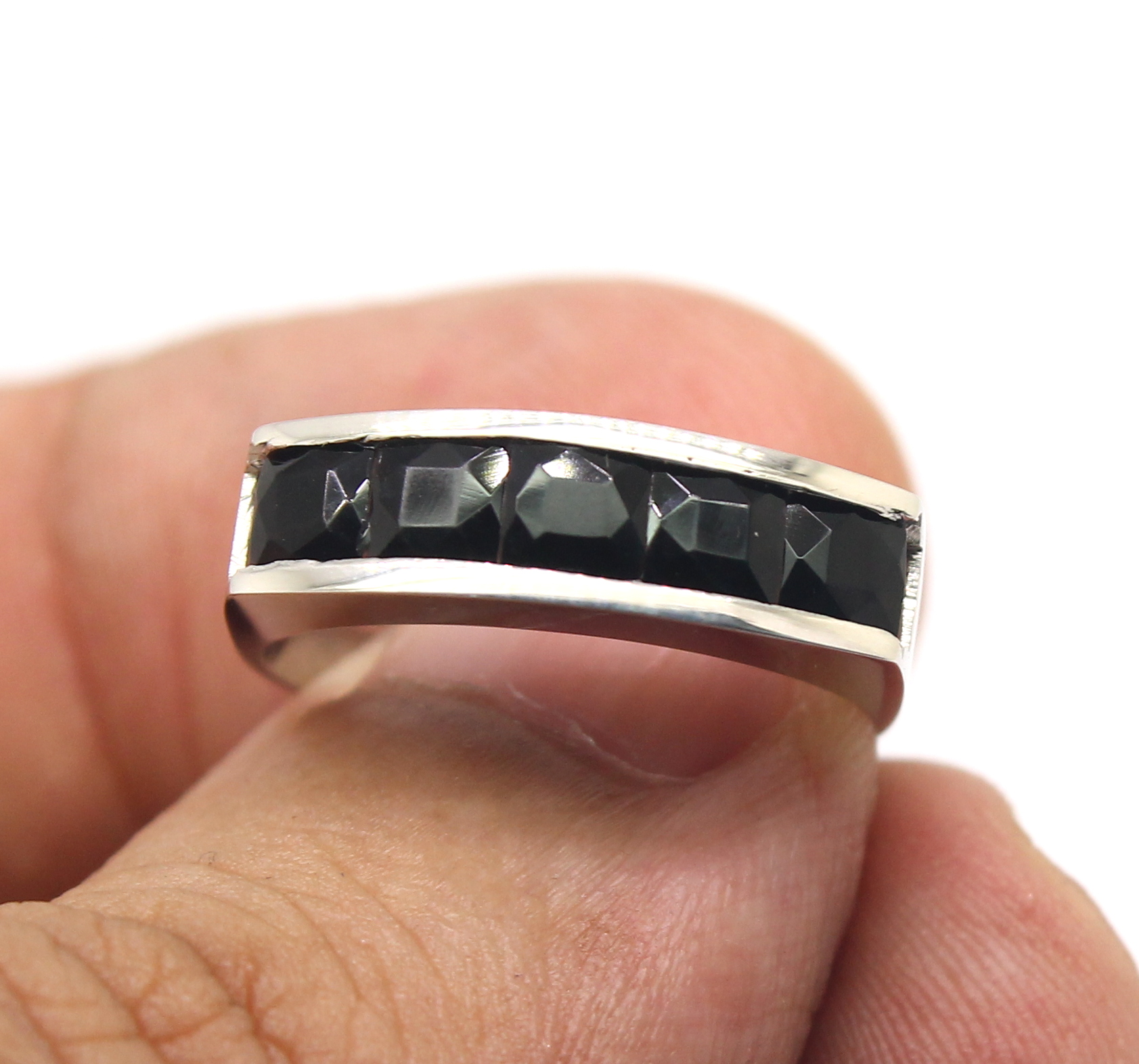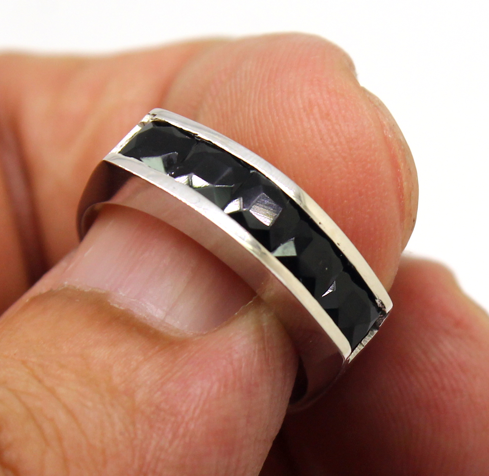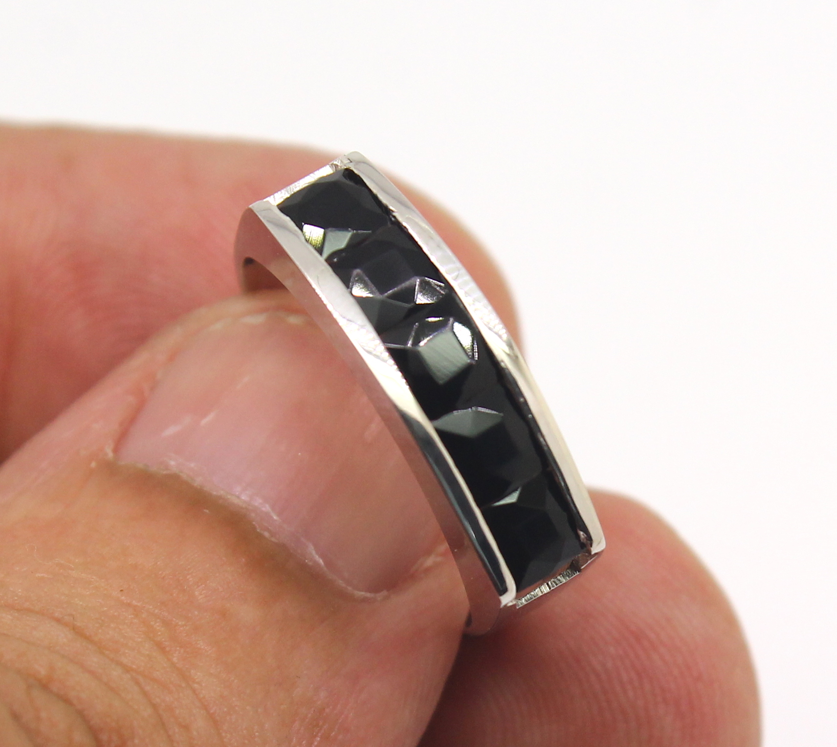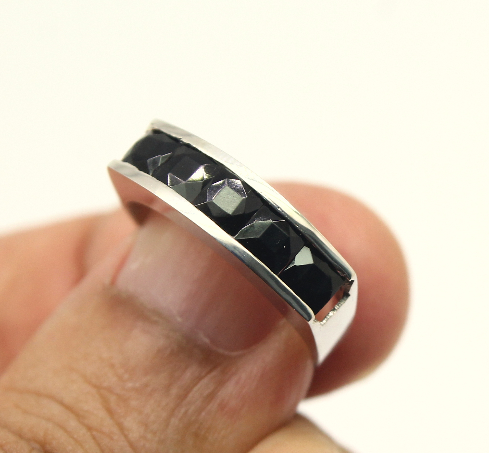 Meia Aliança de Ônix Ouro Branco 18k 750