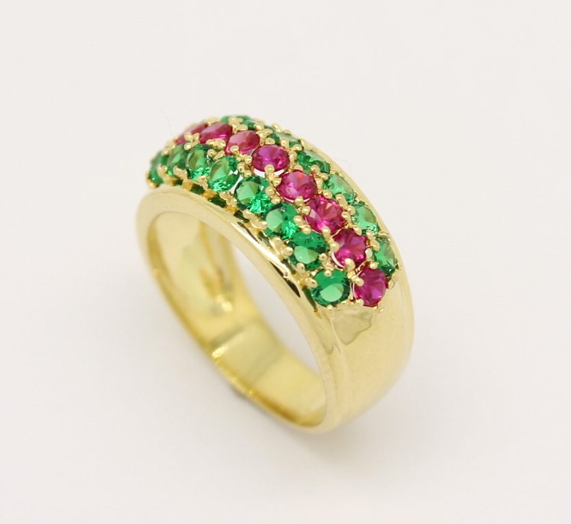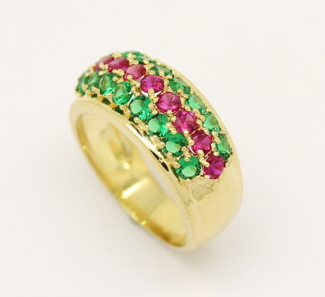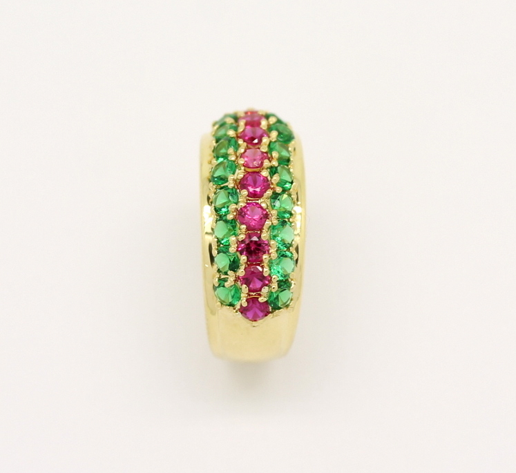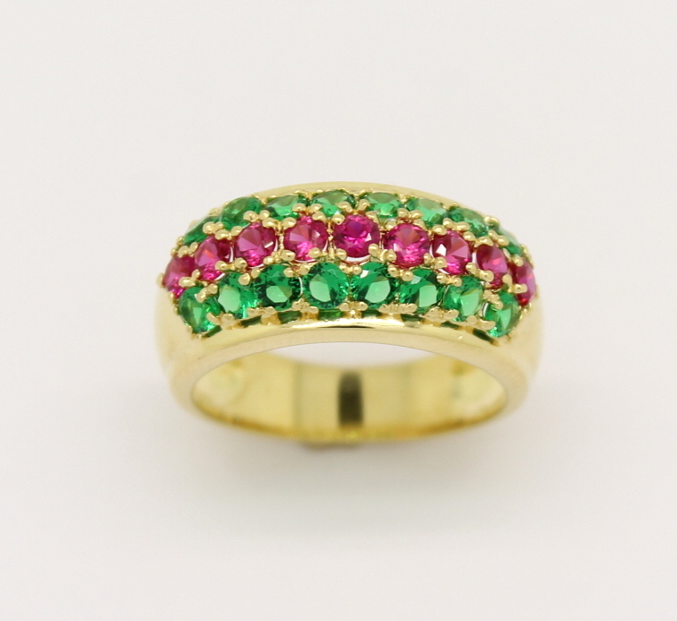 Meia Aliança Esmeralda Rubi Ouro Amarelo 18k 750