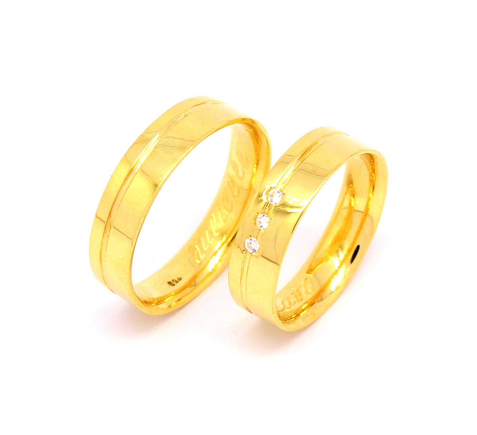 Par de Alianças 10 gramas Zircônias Ouro 18k 750