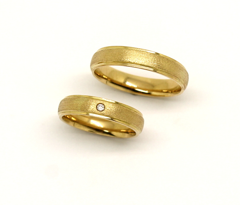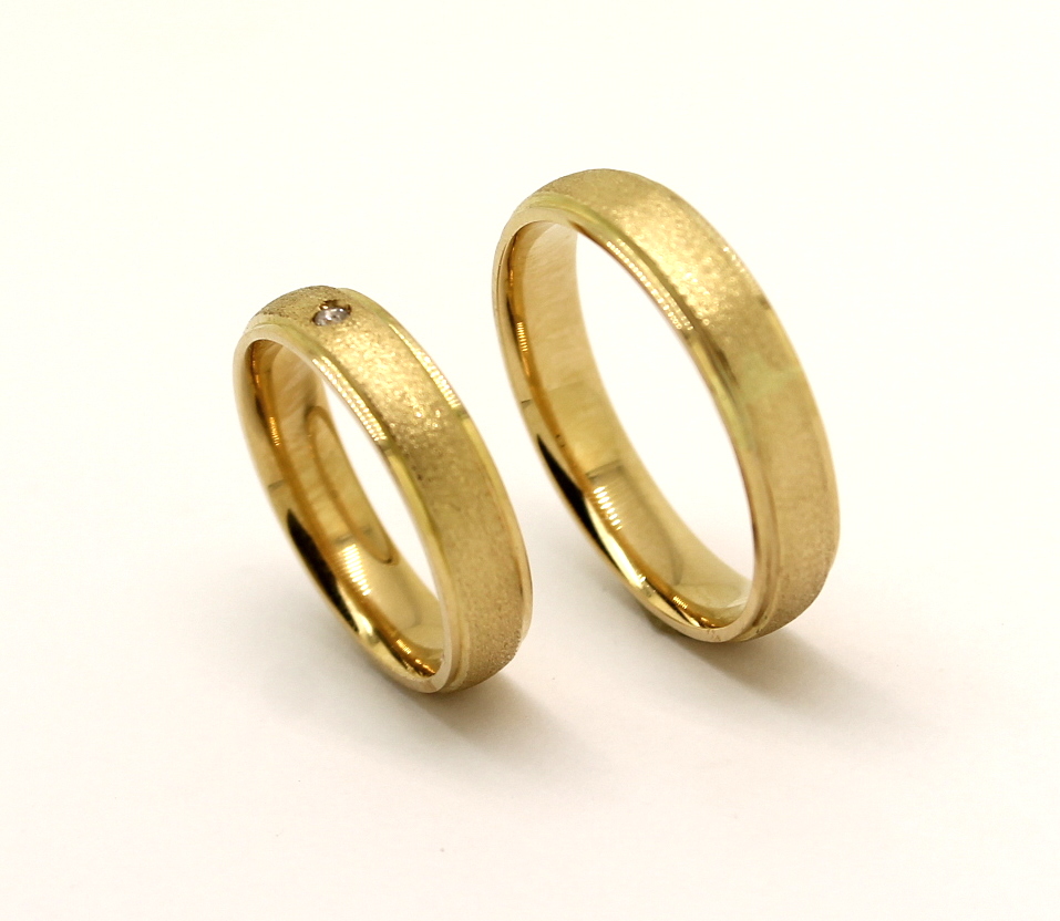 Par de Alianças 8 gramas Fosco Zircônios Ouro Amarelo 18k 750