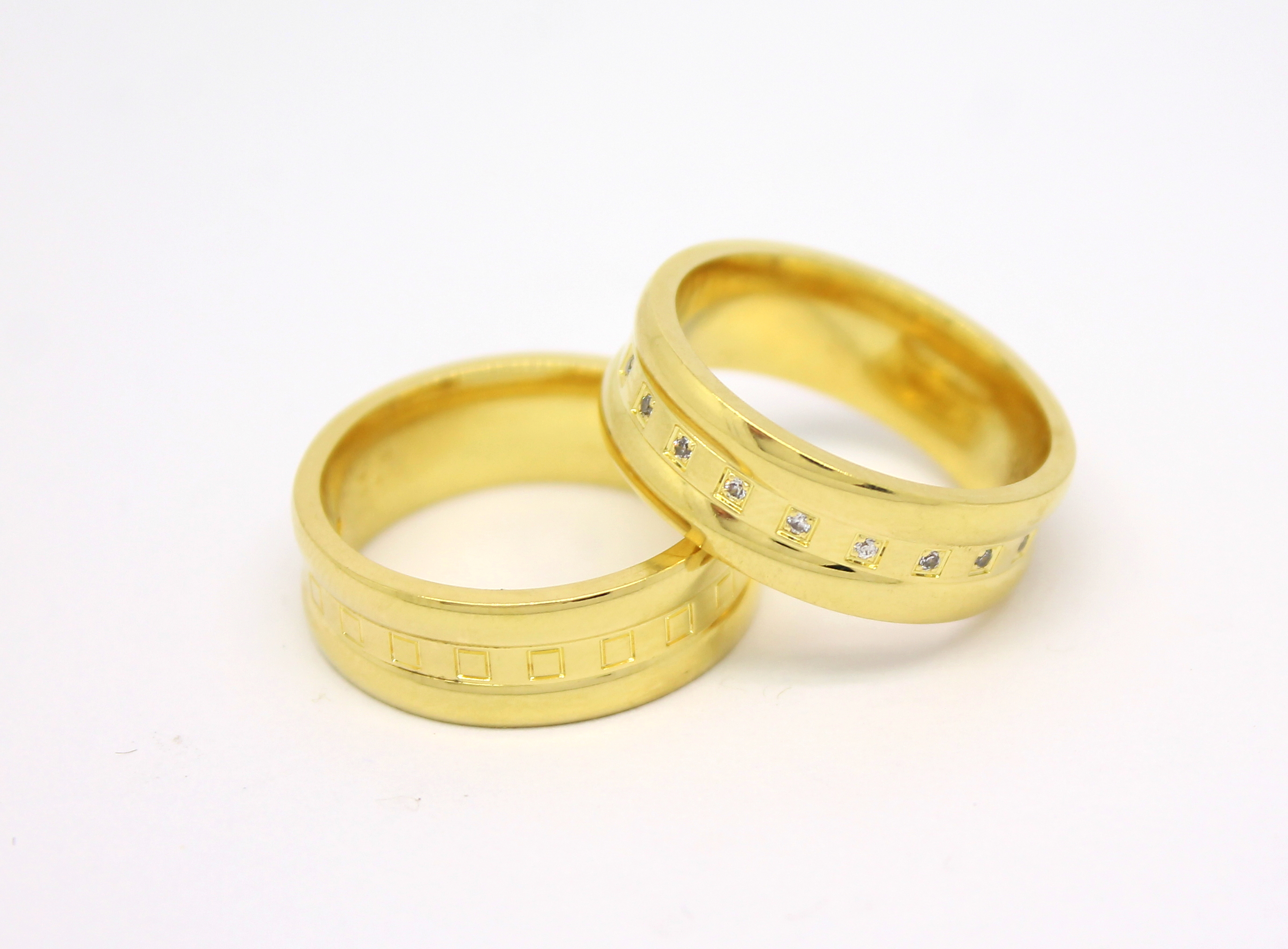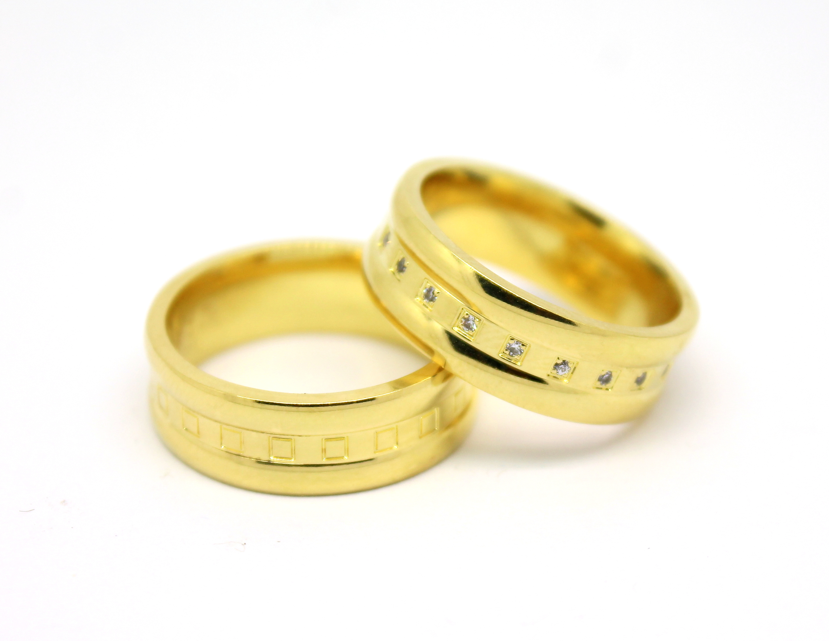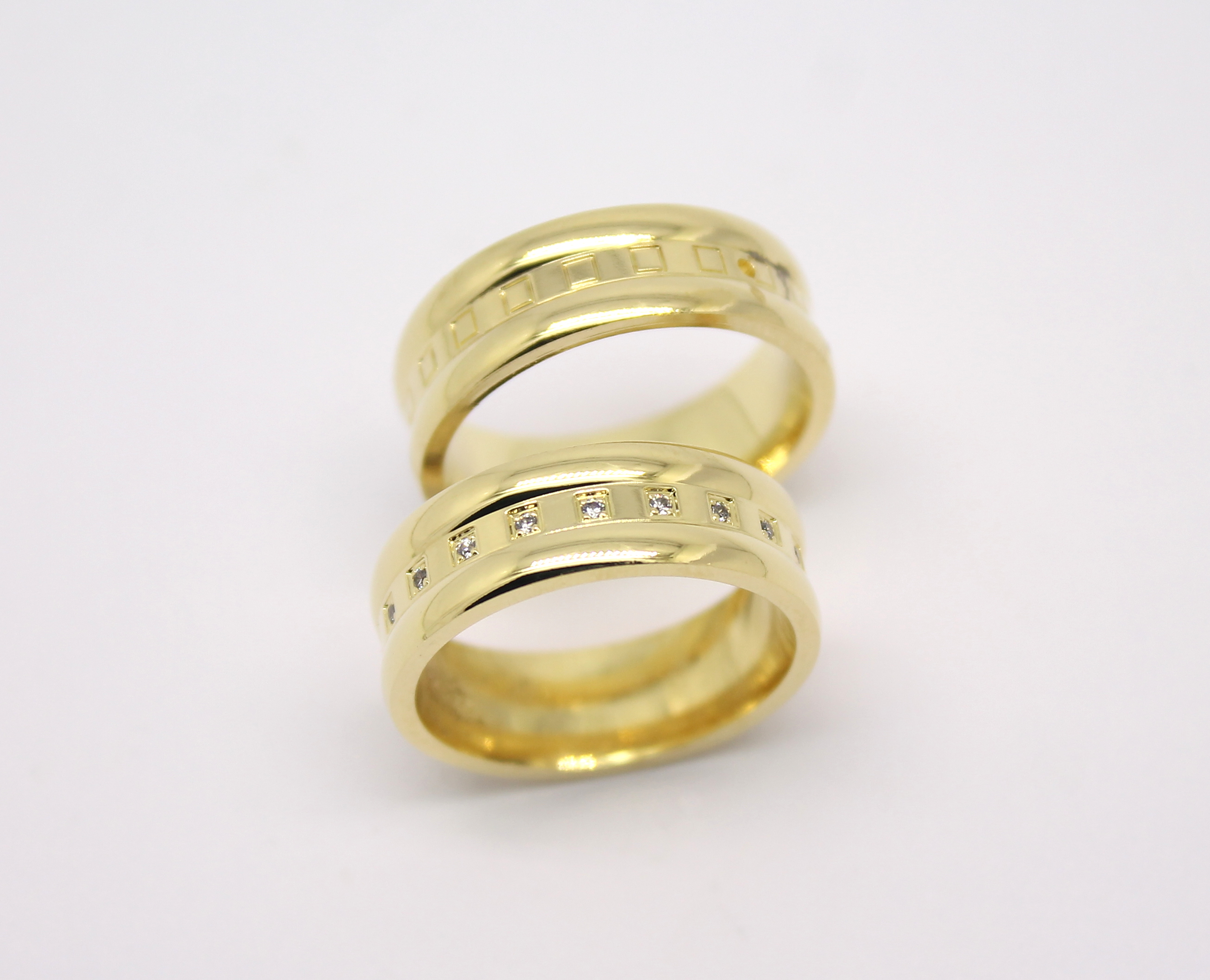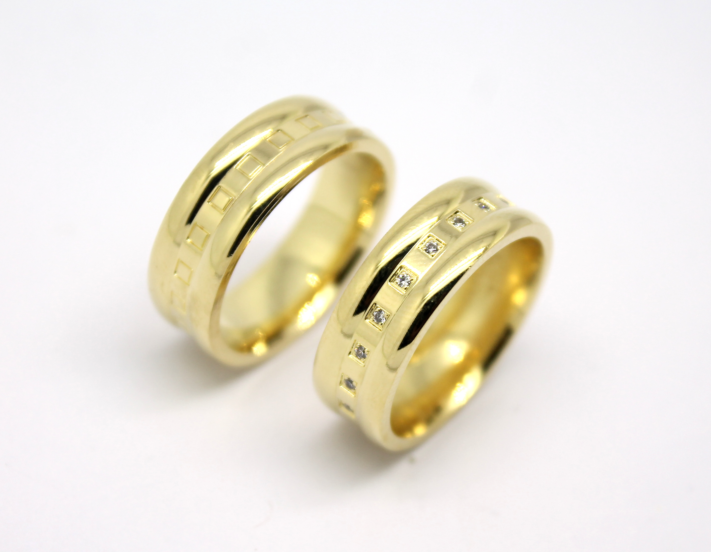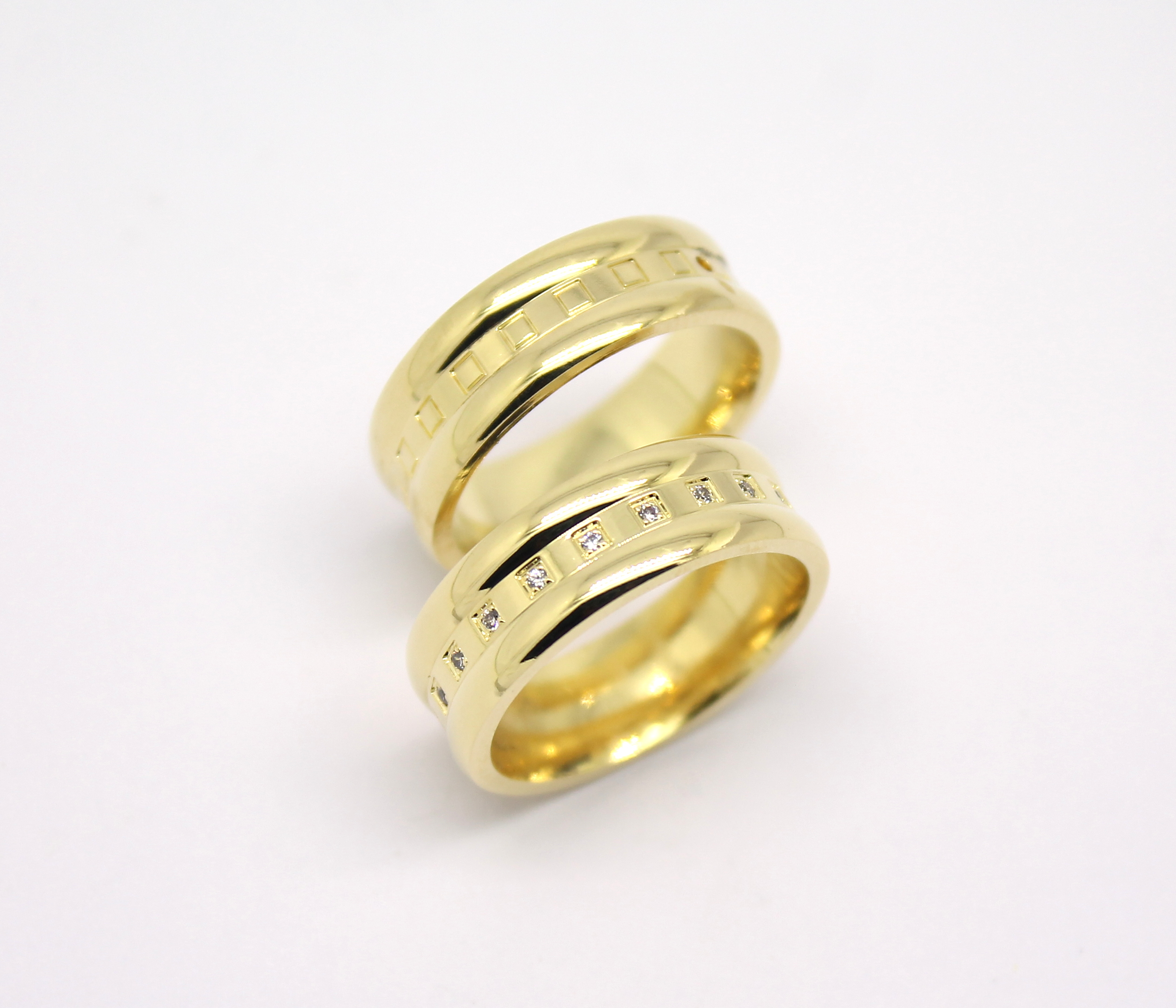 Par de Alianças com Quadrados e Diamantes Ouro 18k 750