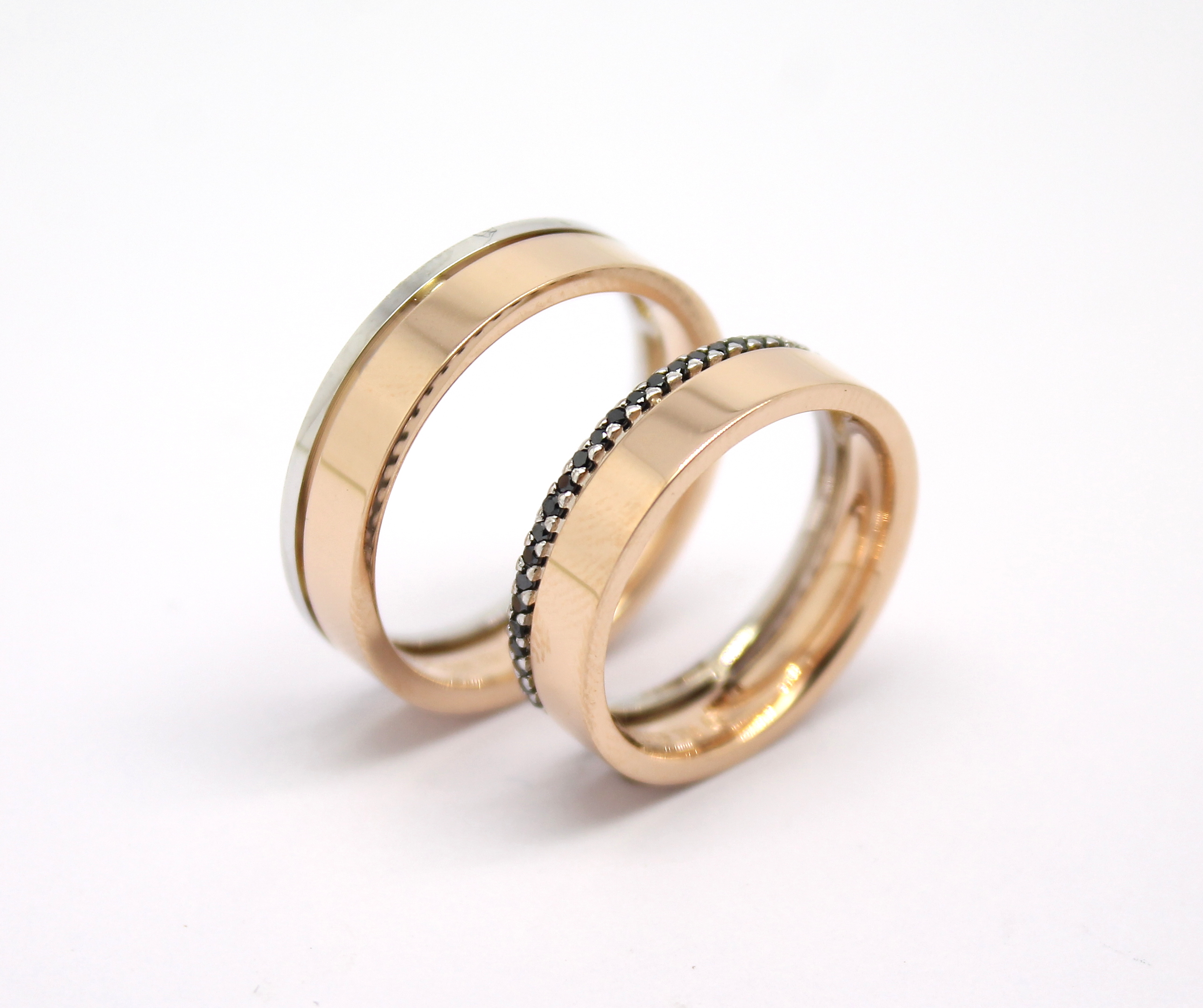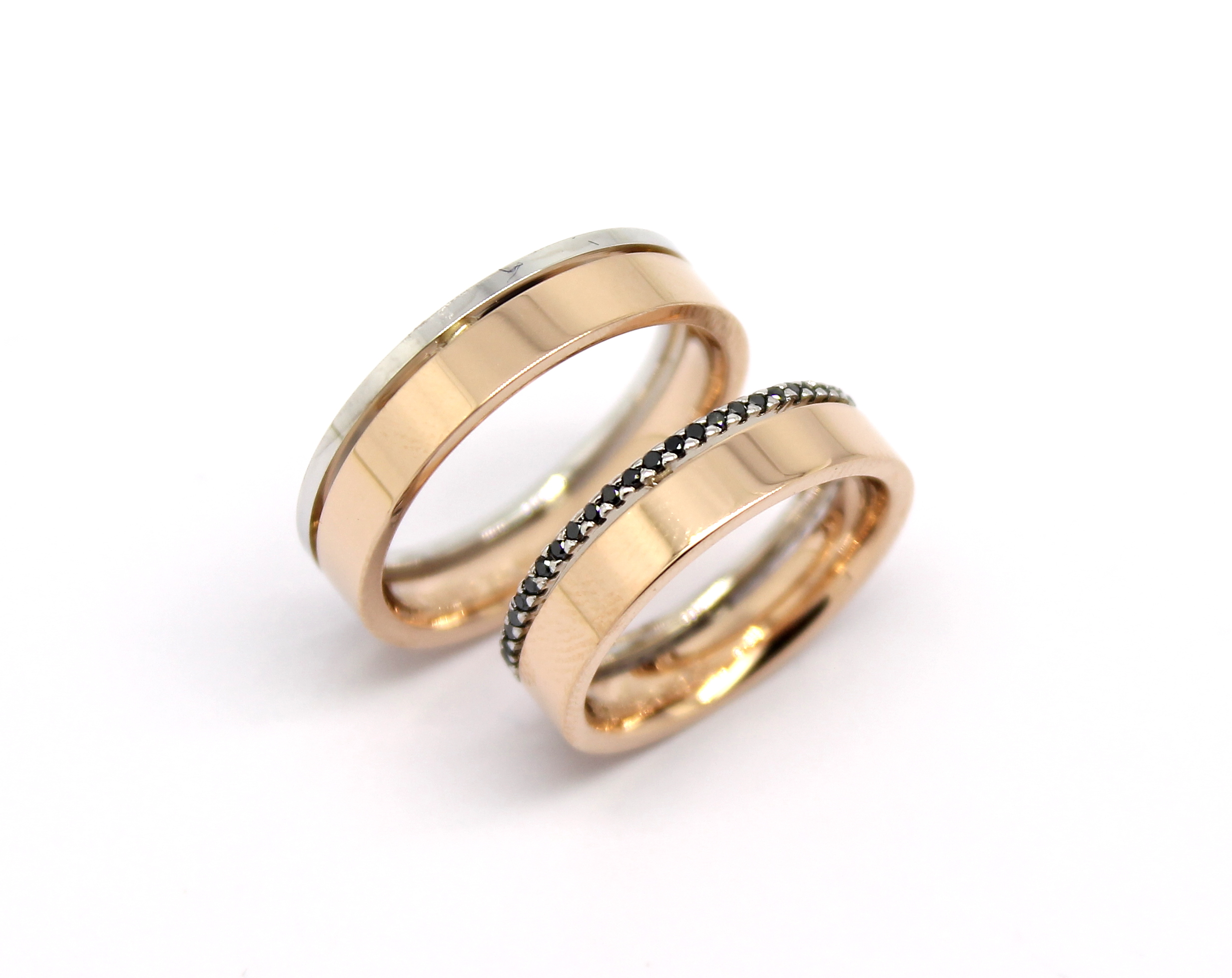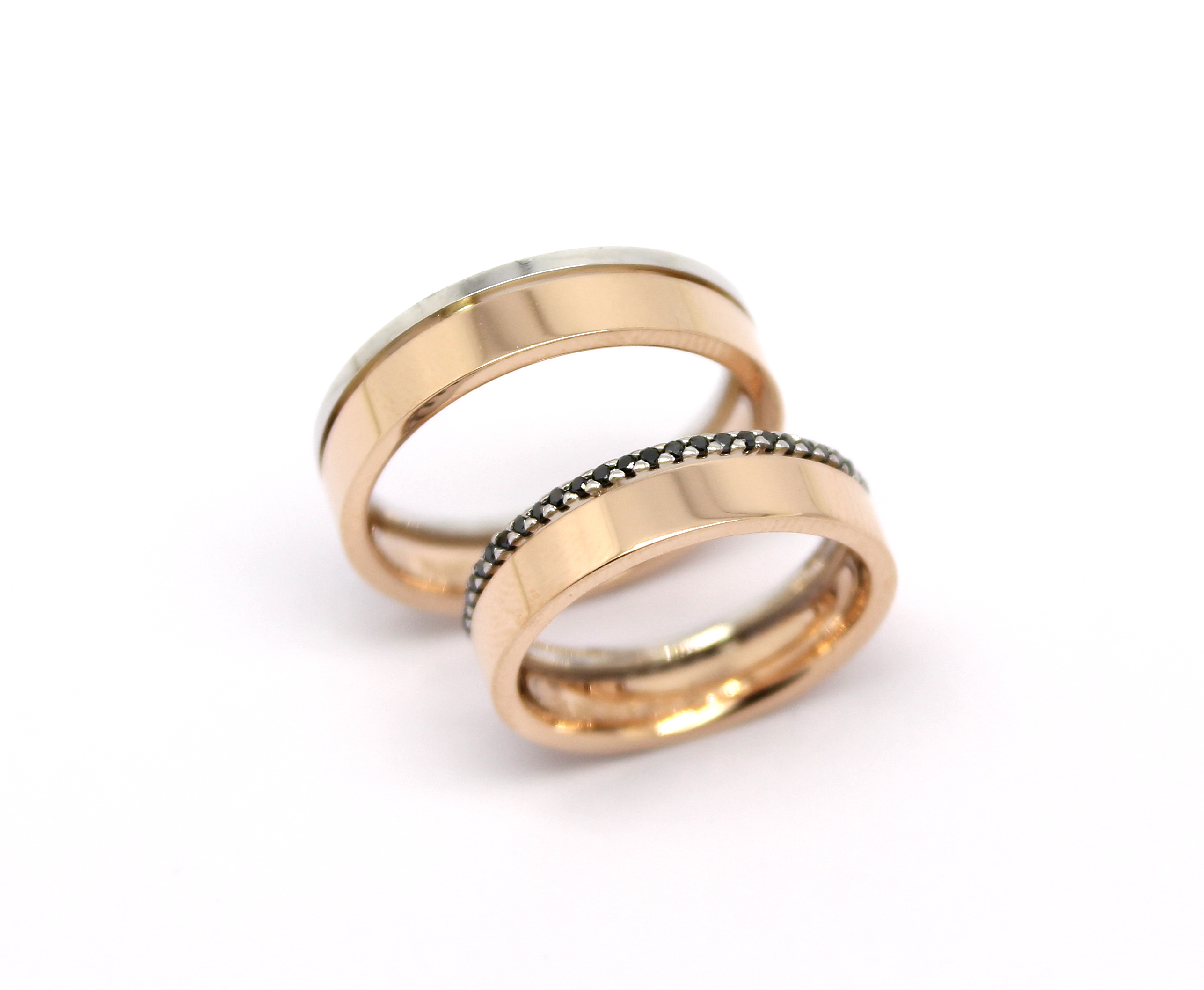Par de Alianças Diamantes Negros Ouro Rose e Branco 18k 750