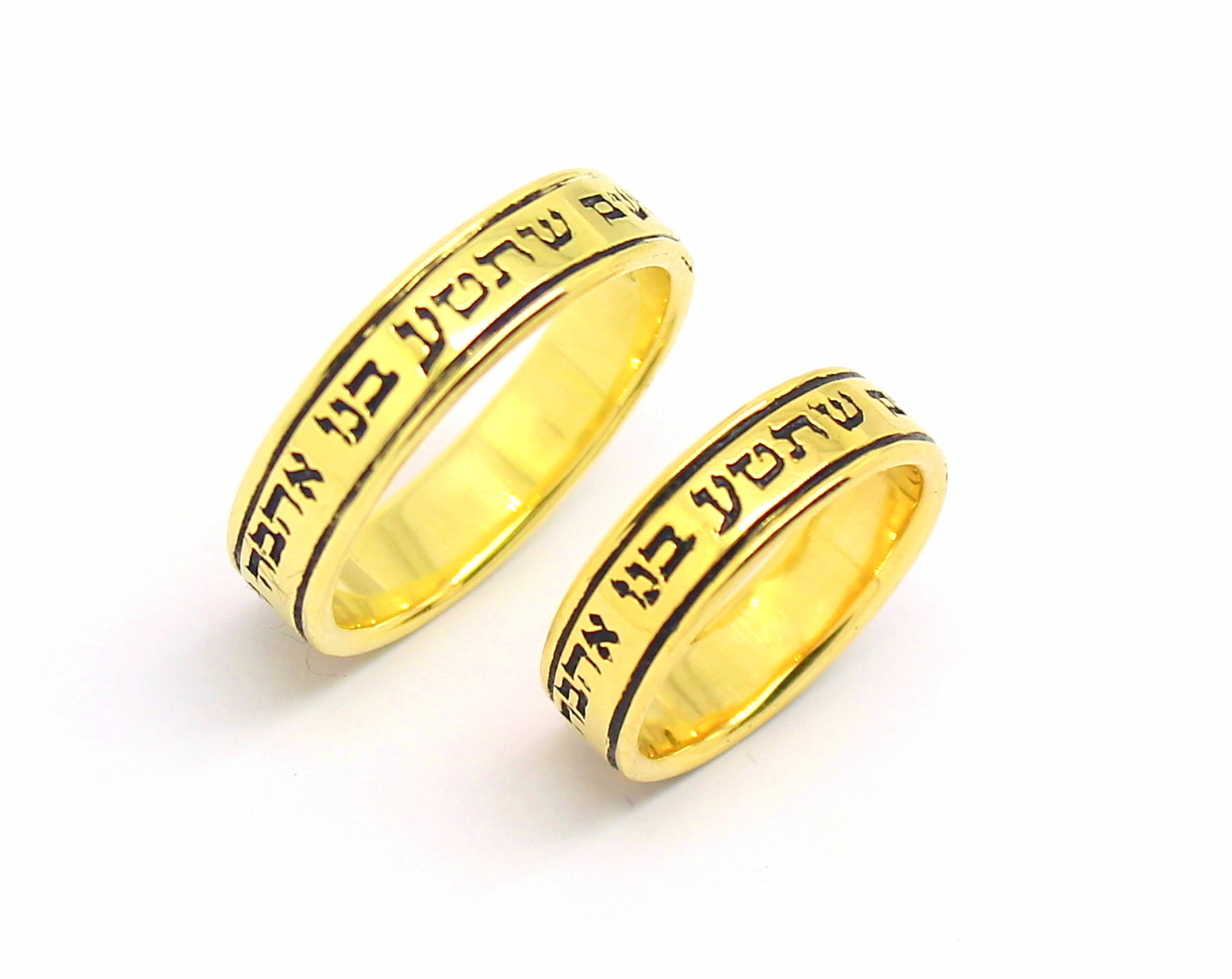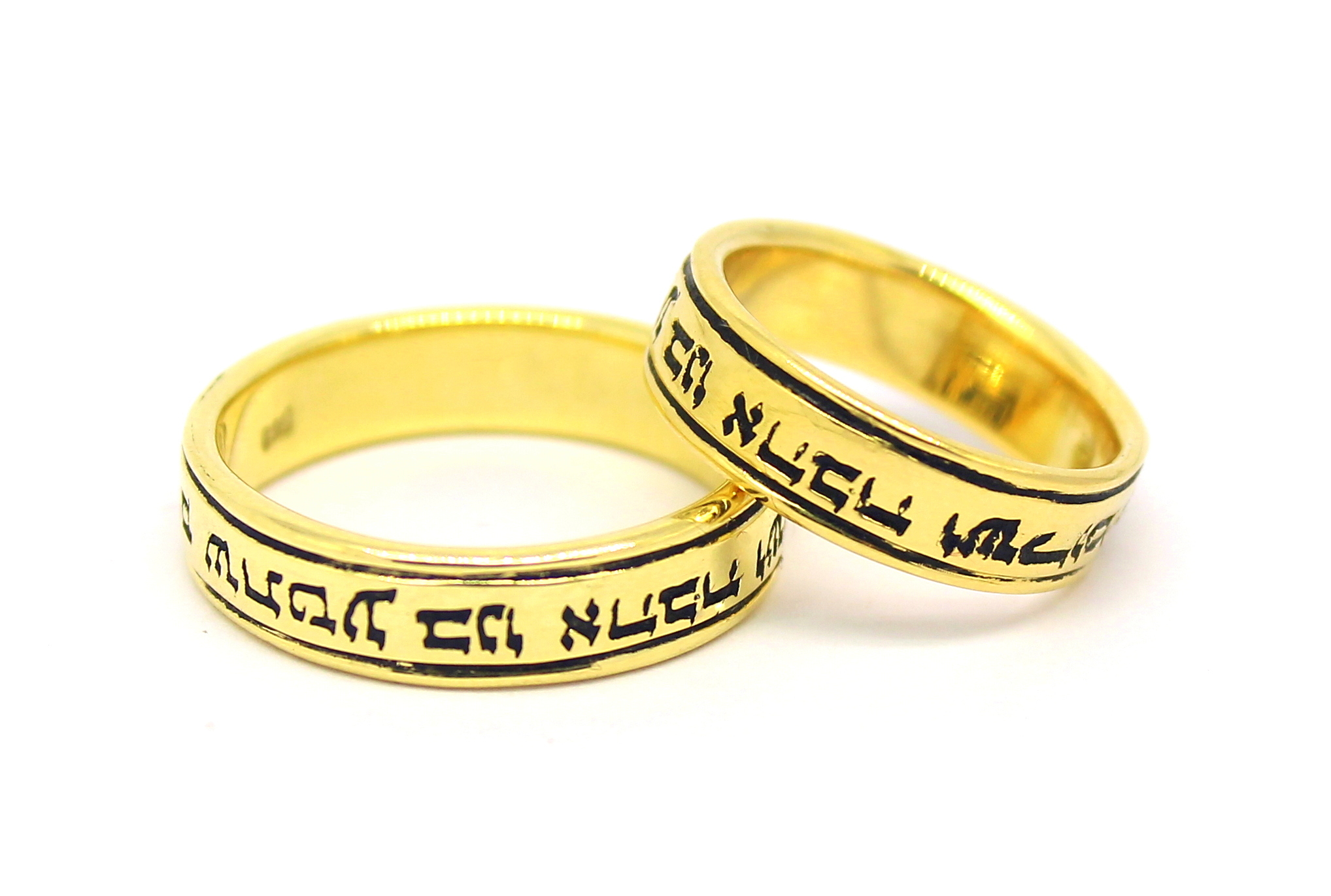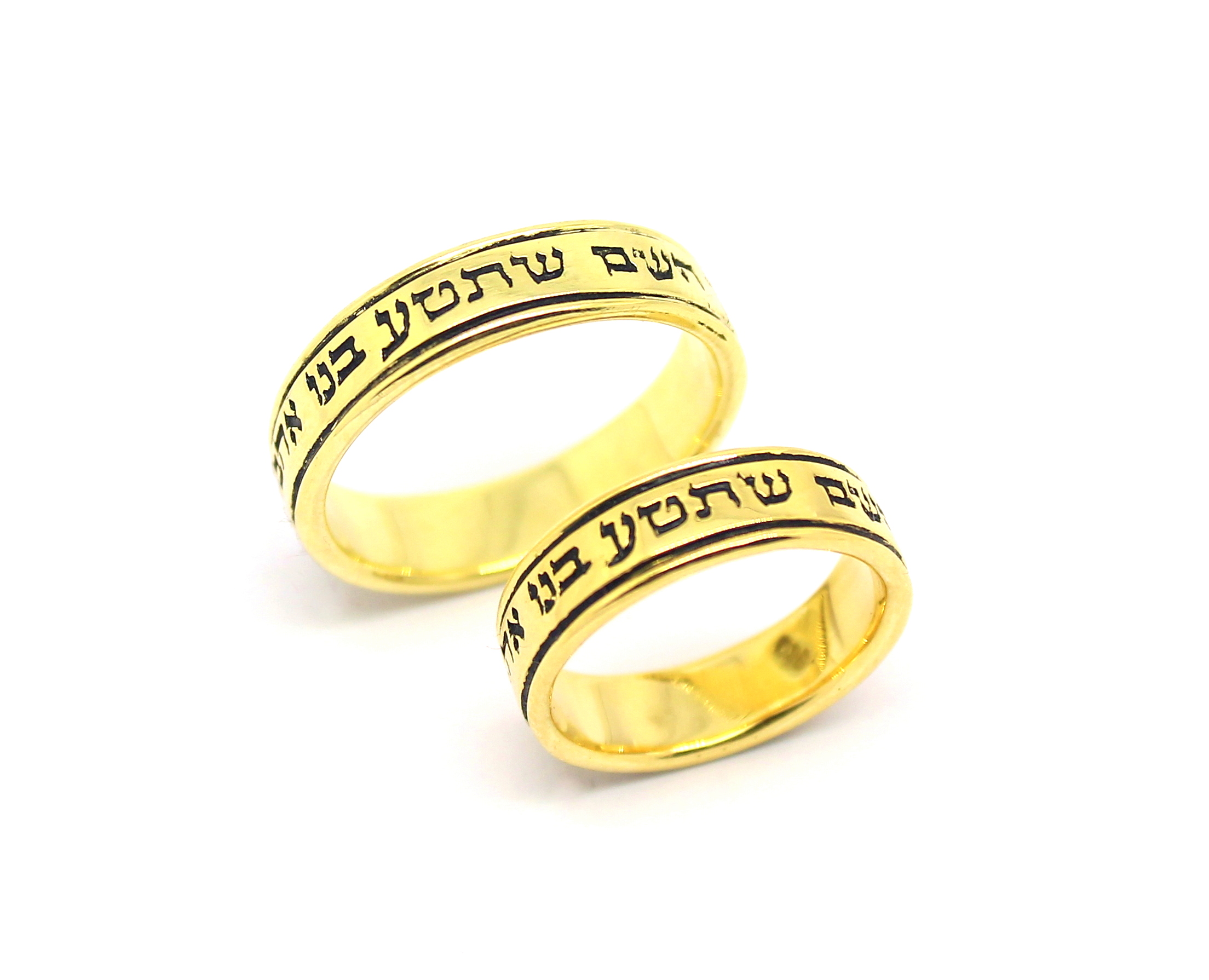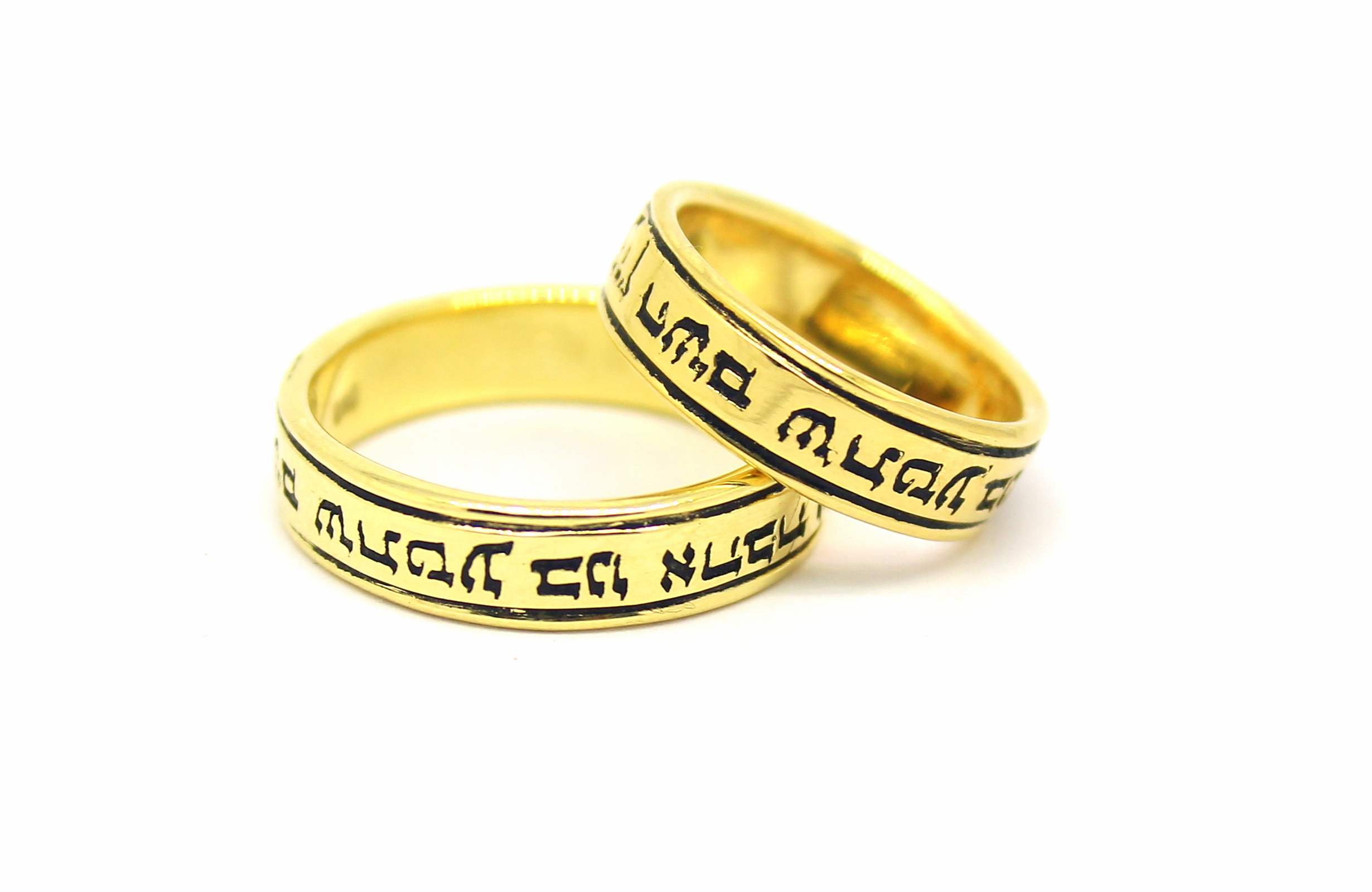 Par de Alianças Escrita Hebraico Ouro 18k 750