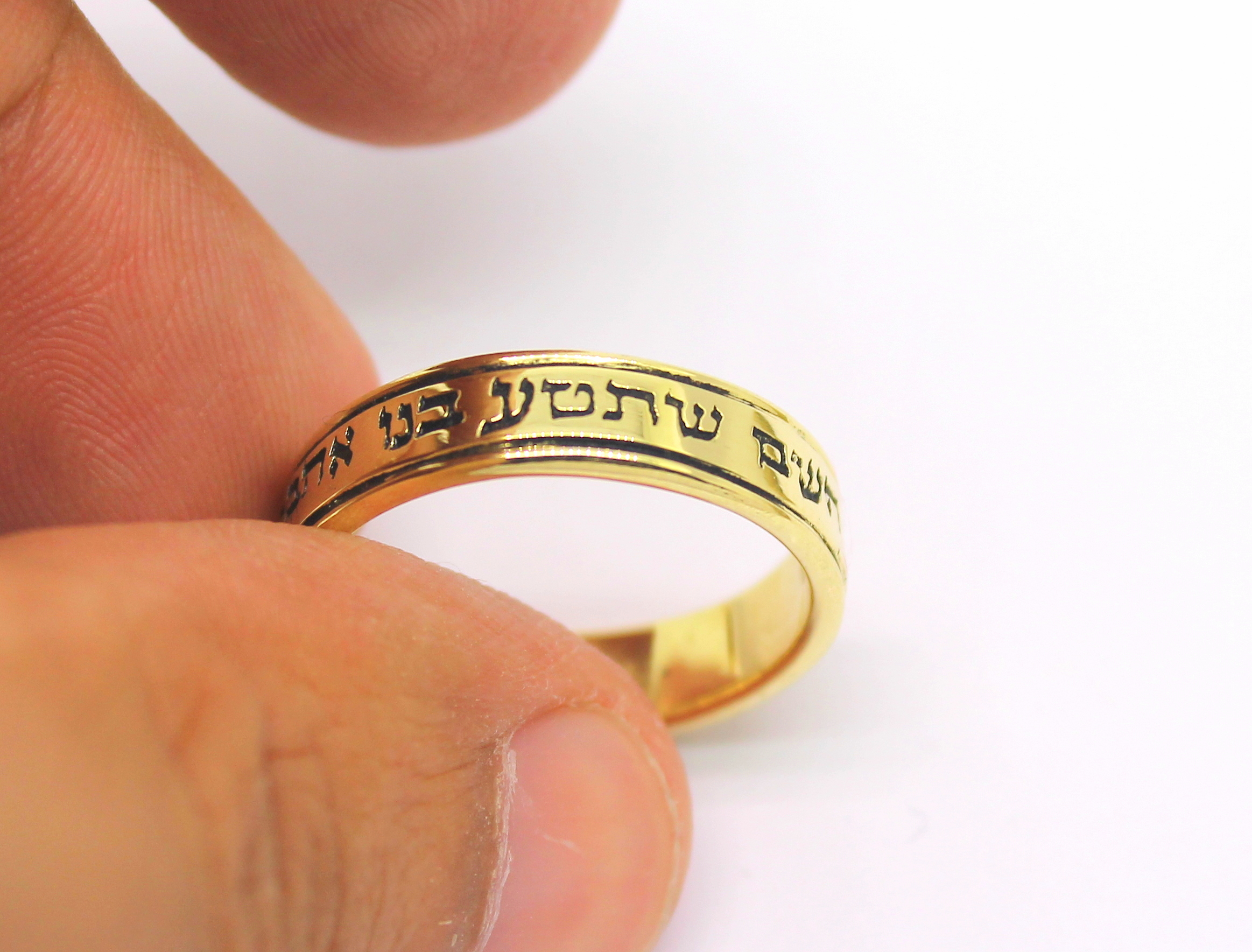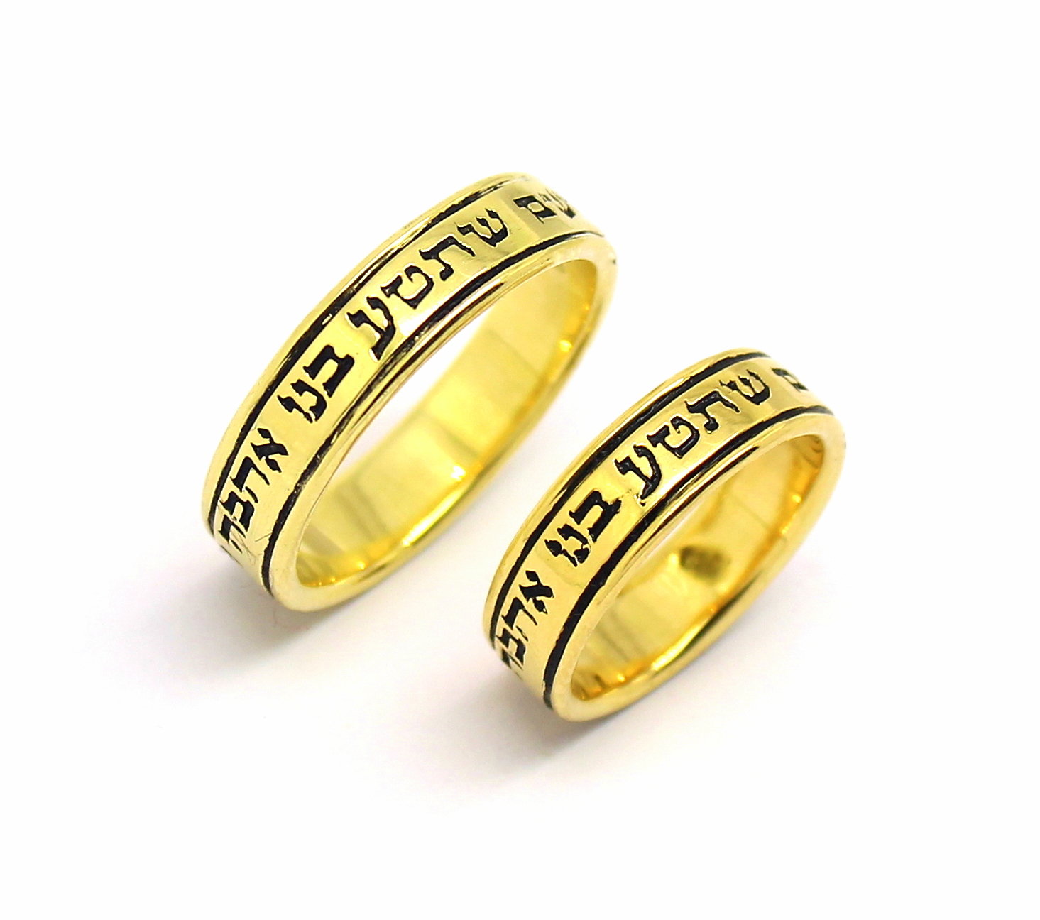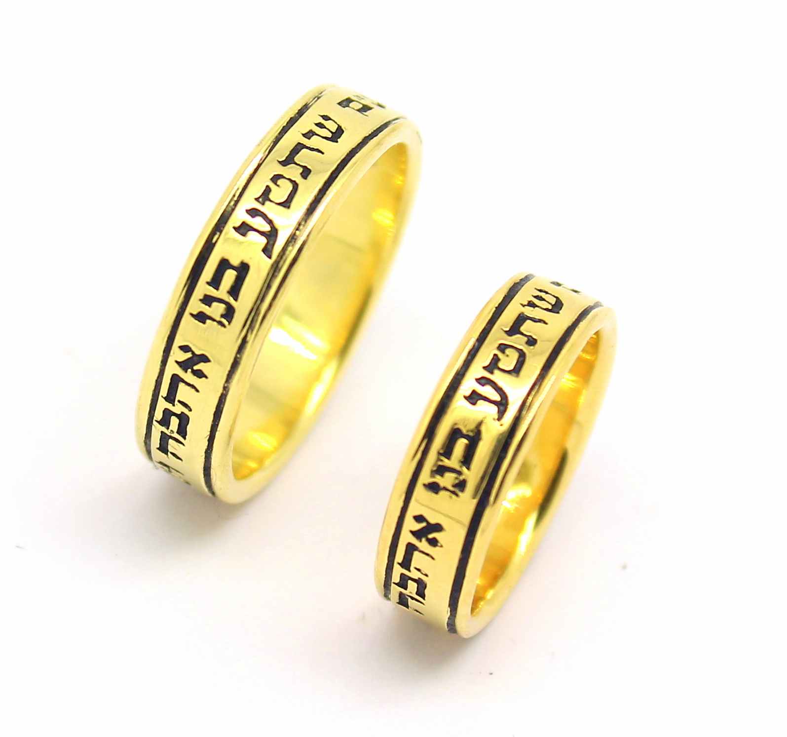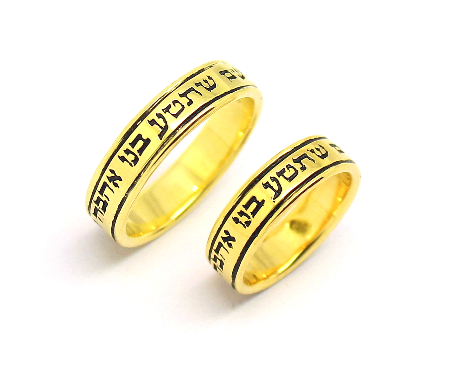 Par de Alianças Escrita Hebraico Ouro 18k 750