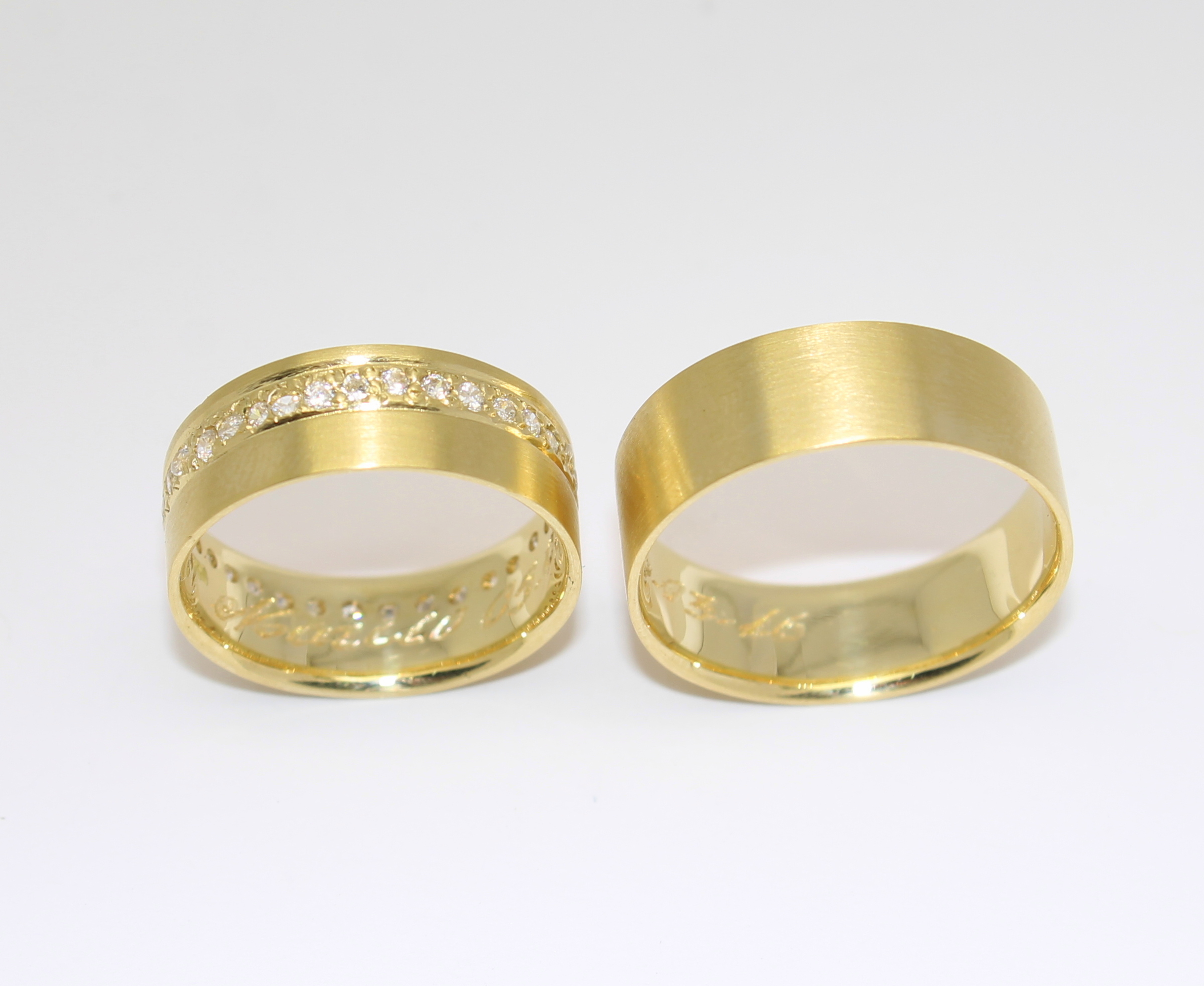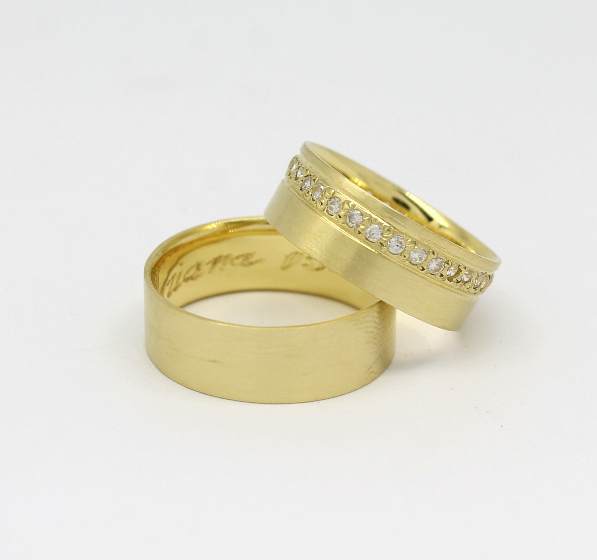 Par de Alianças Foscas e Cravejada Ouro 18k 750
