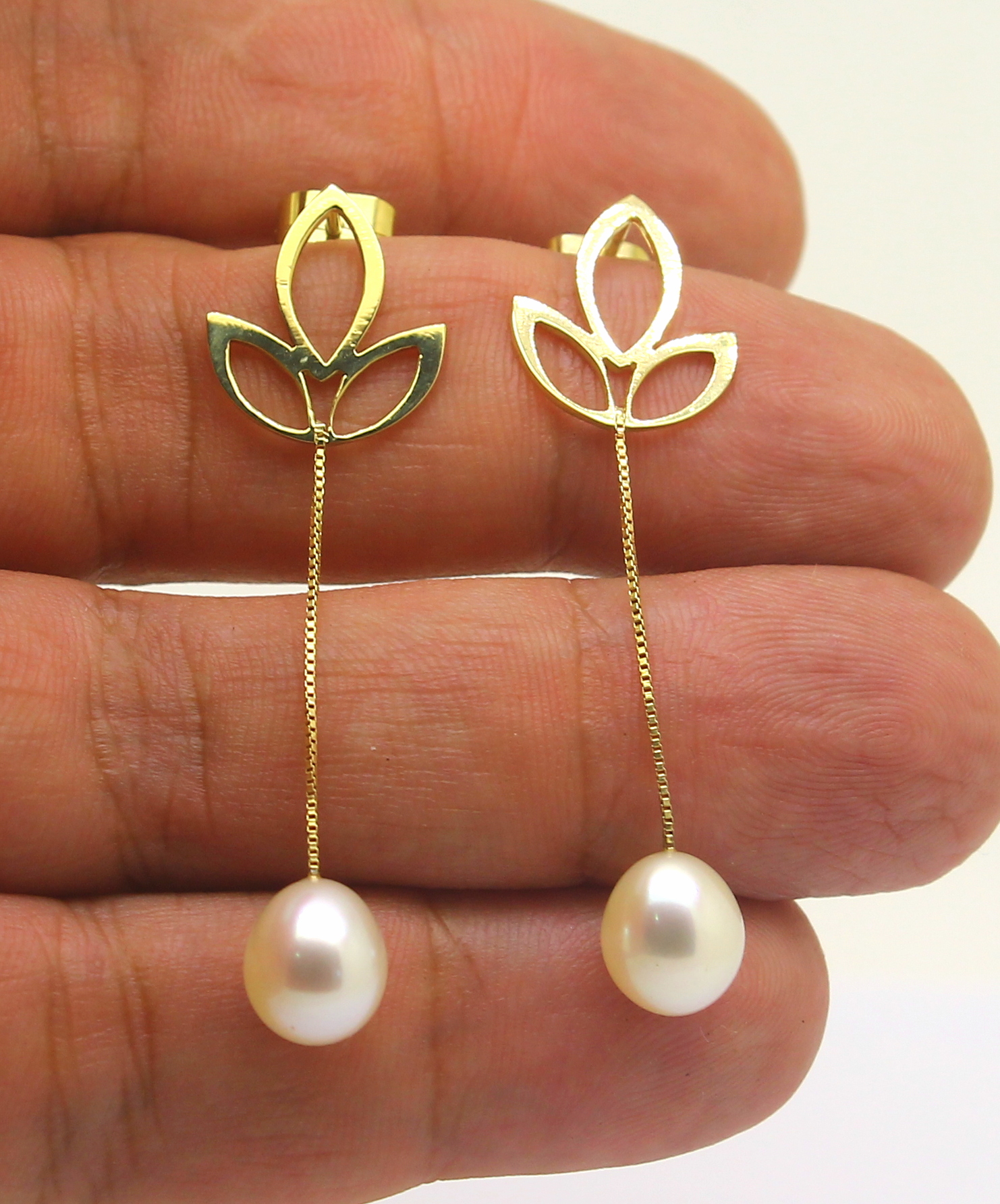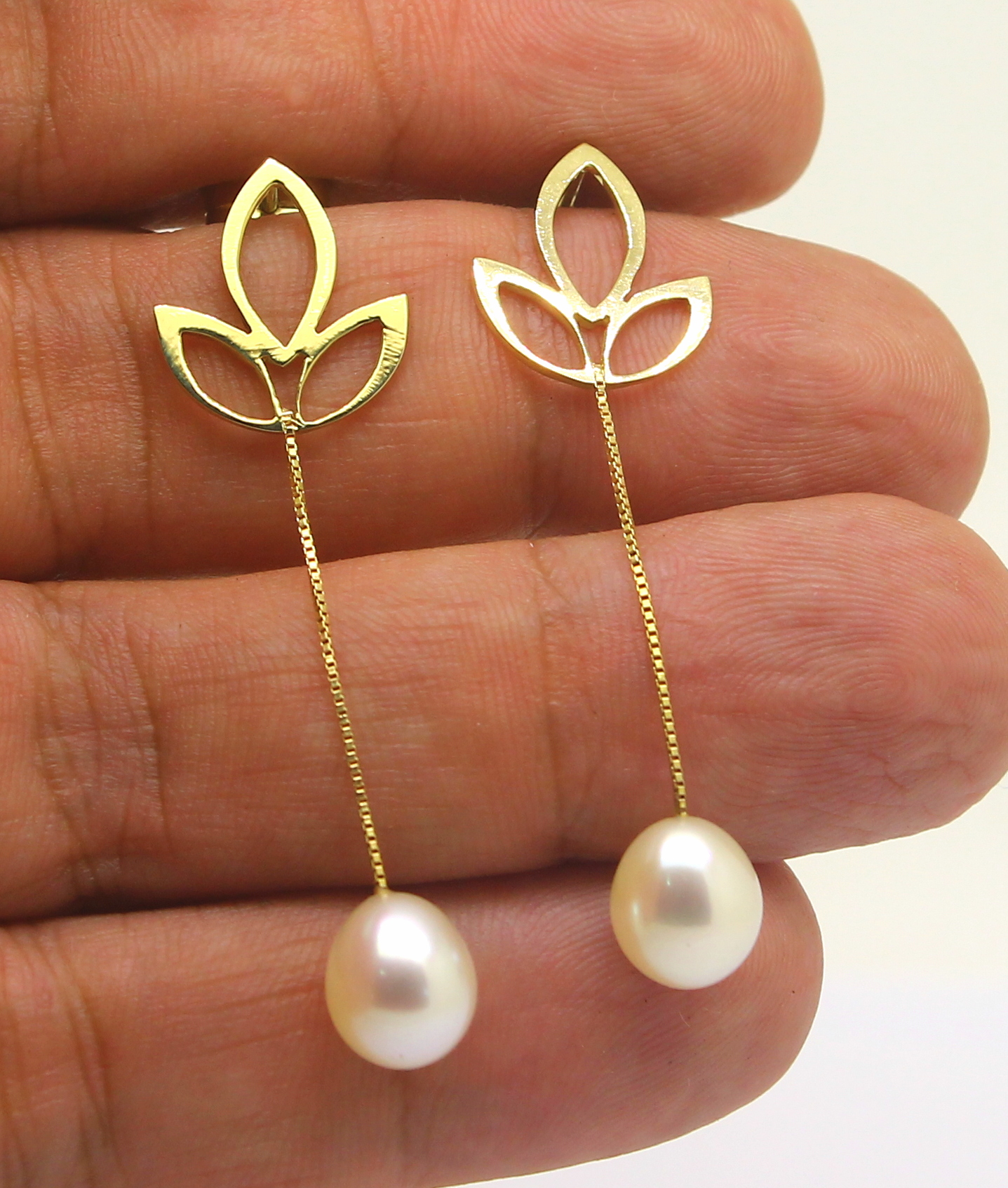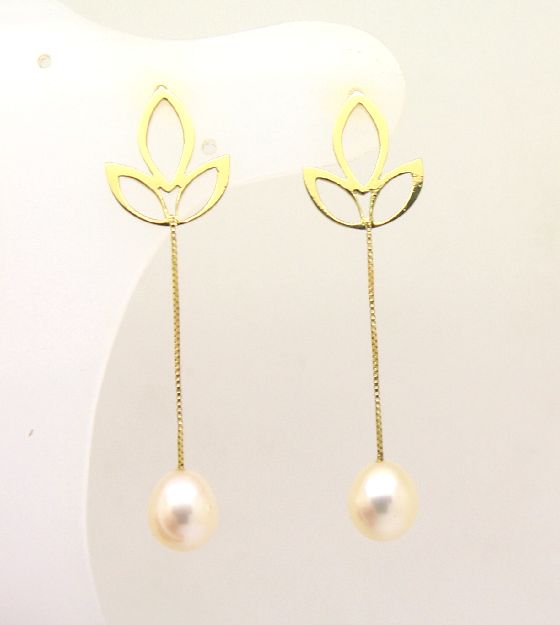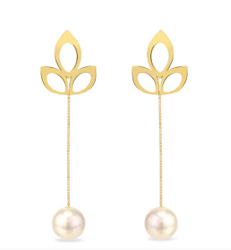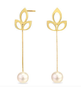 Par de Brincos Folhas Pérolas Ouro 18k