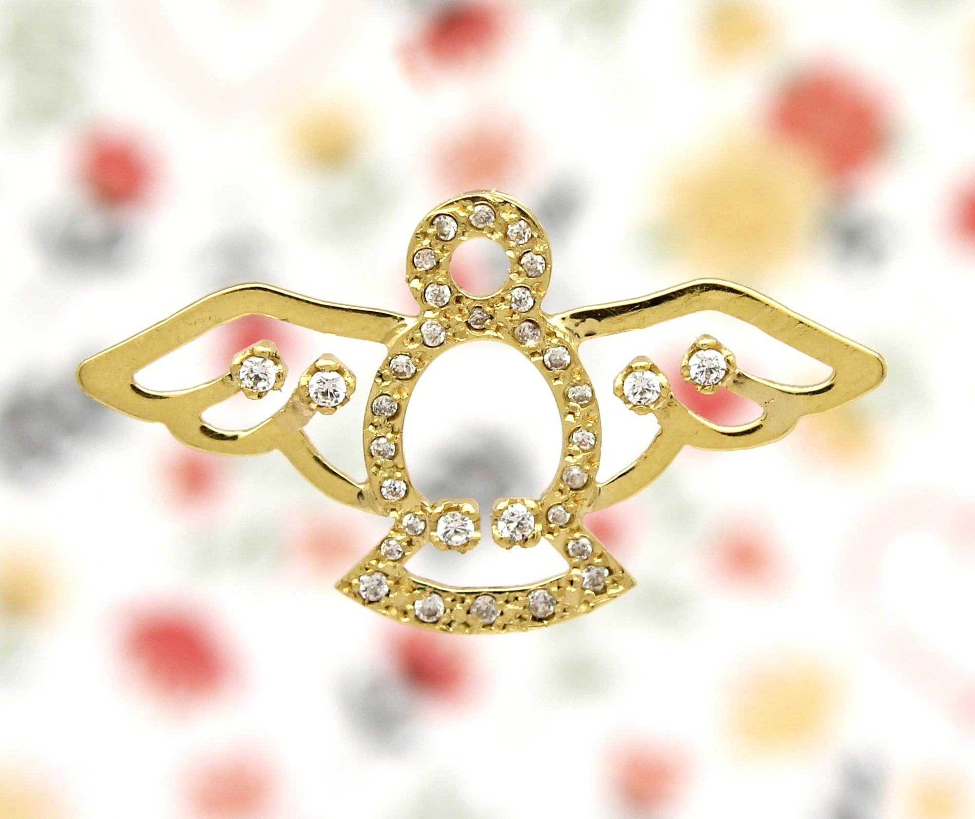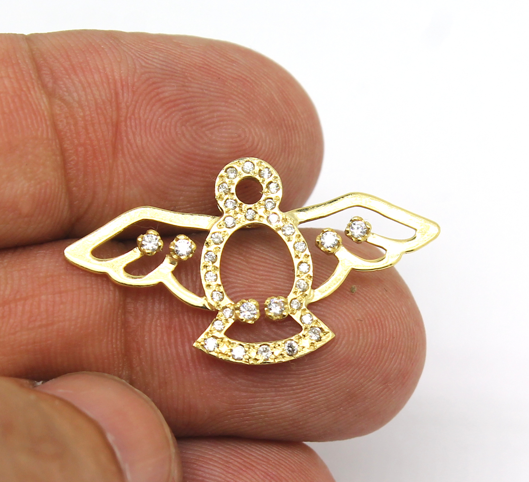 Pingente Divino Espírito Santo Zircônia Vazado Ouro 18k 750