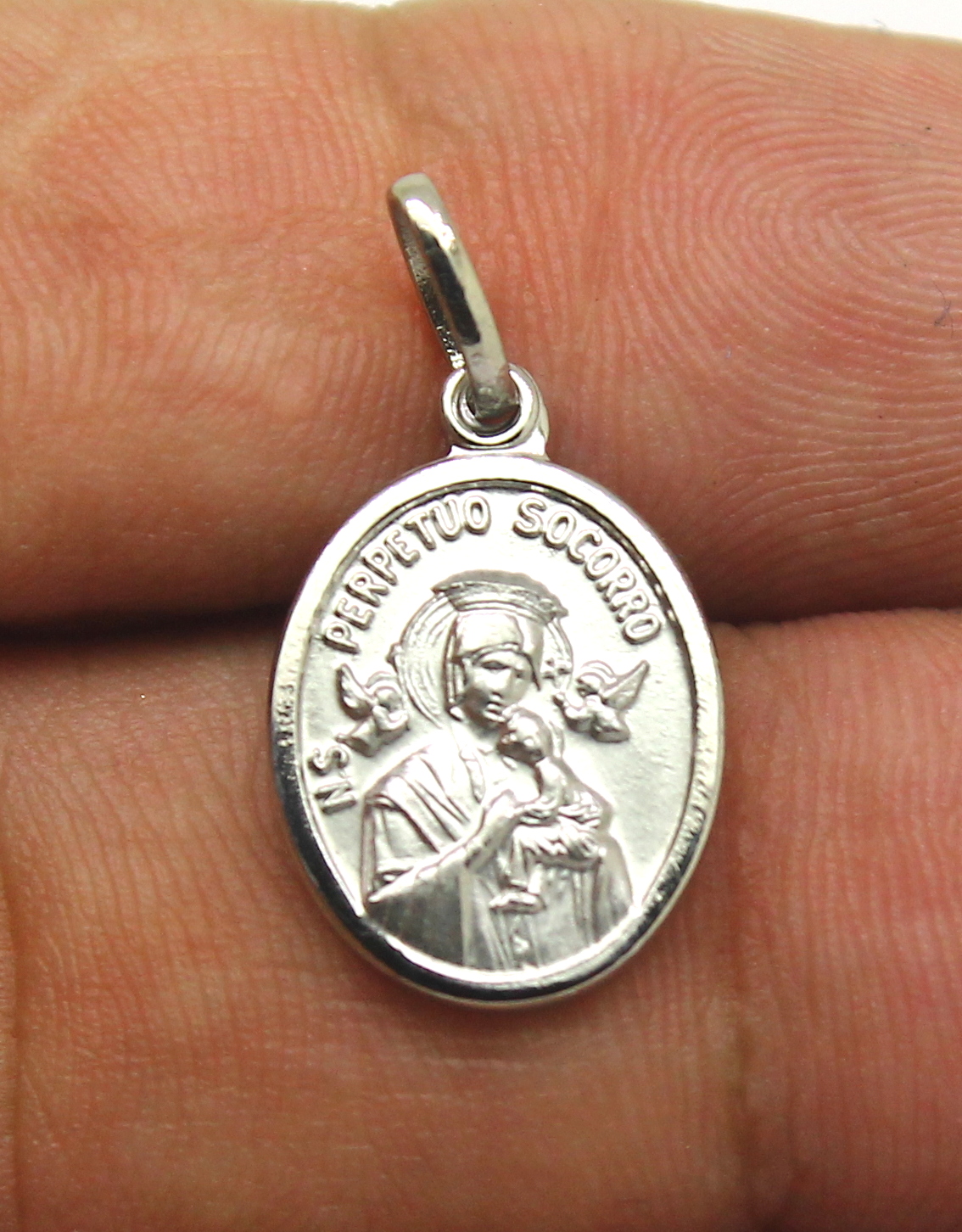 Pingente N. Sra. do Perpétuo Socorro Oval Aço 316L