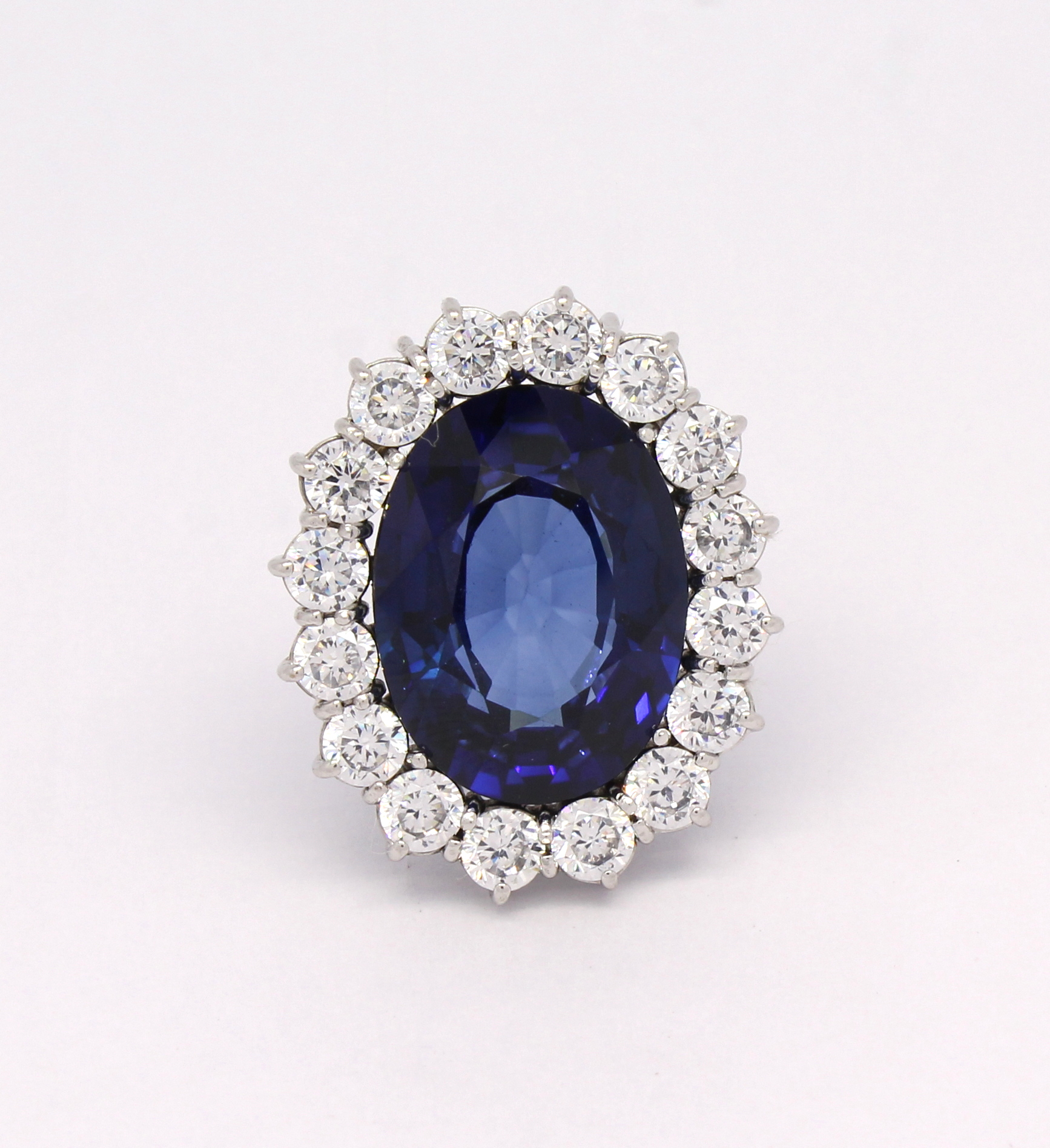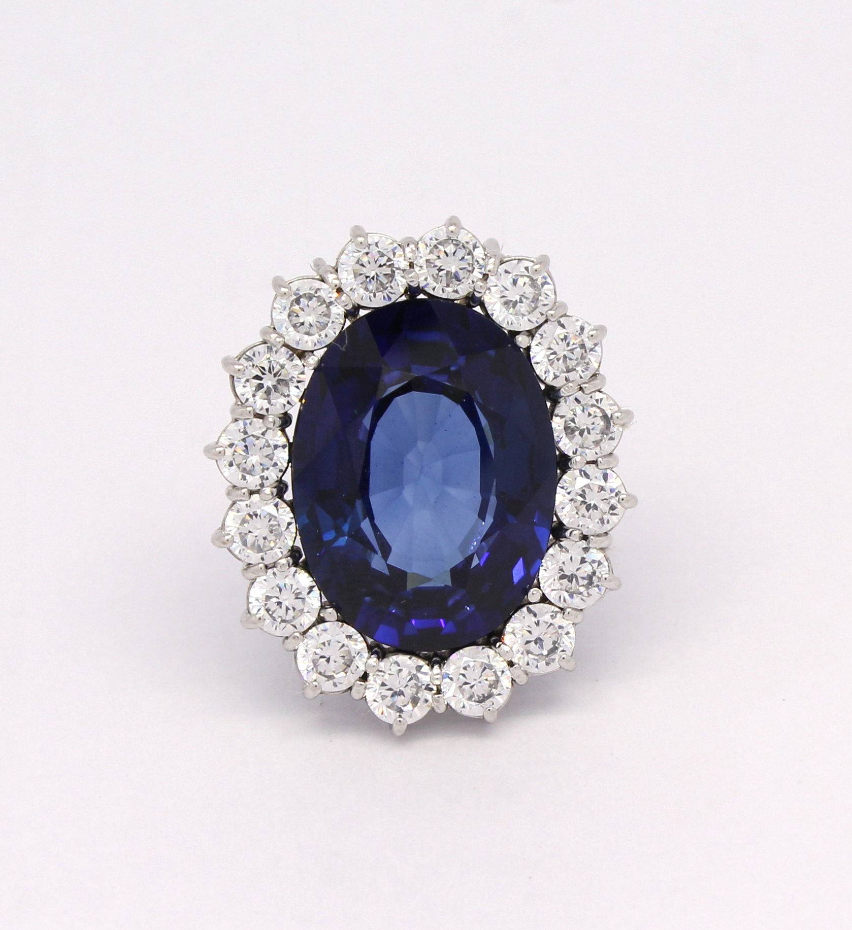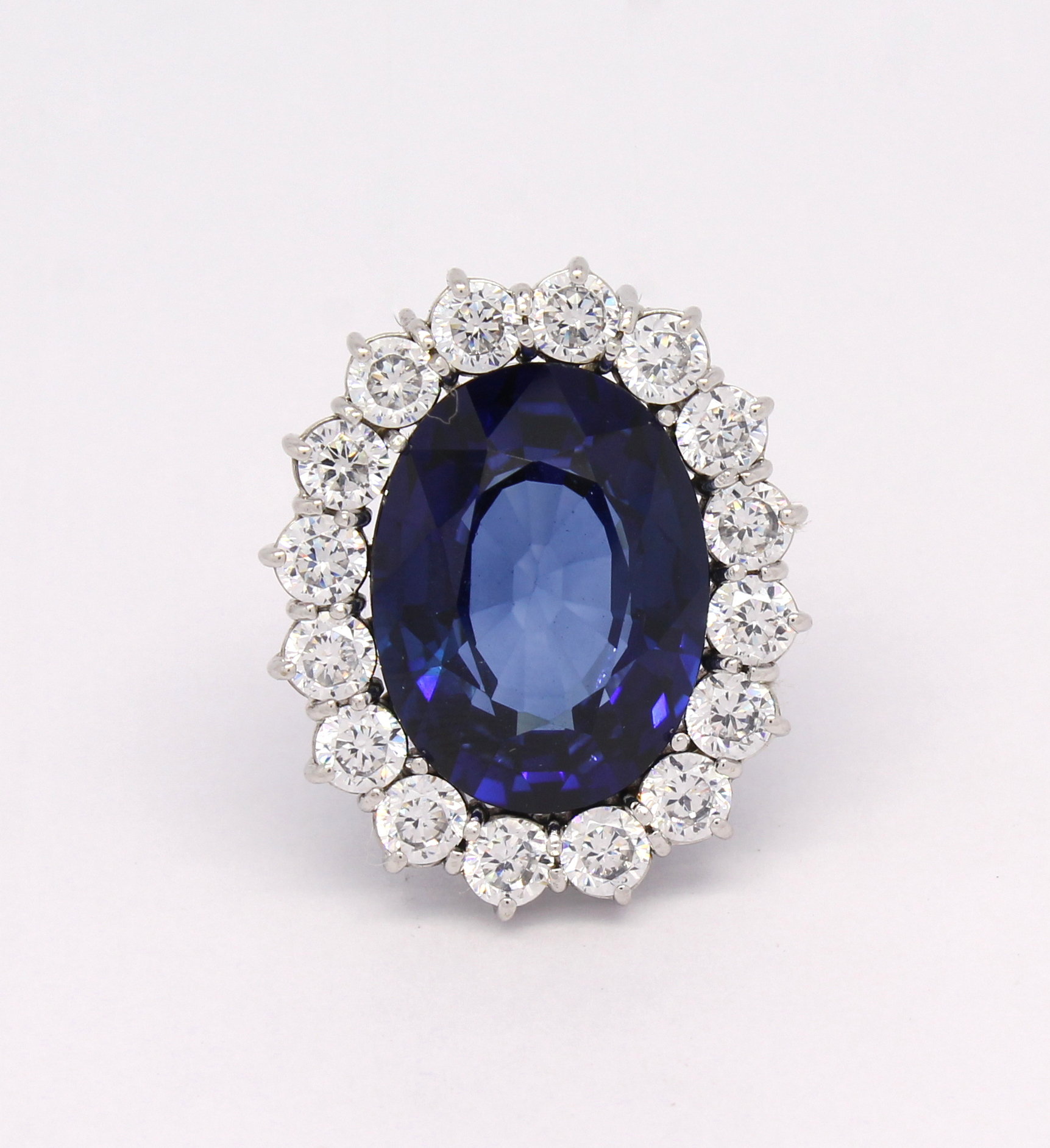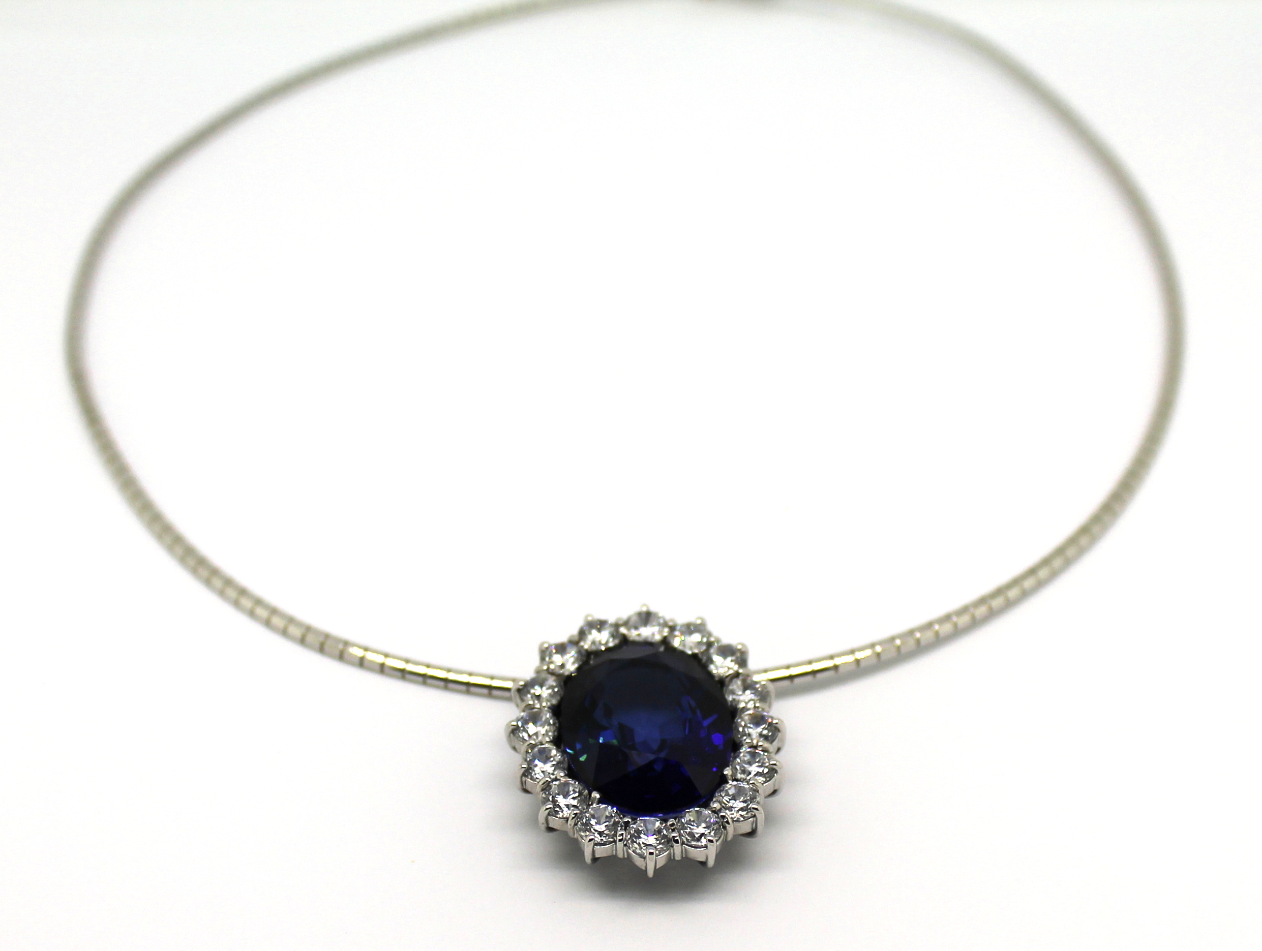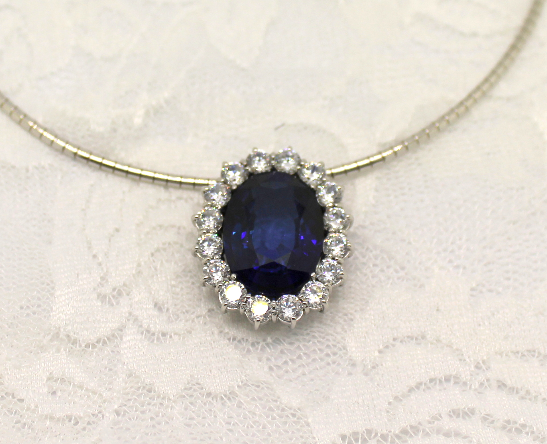 Pingente Safira Azul Oval e Zircônios Ouro Branco 18k 750
