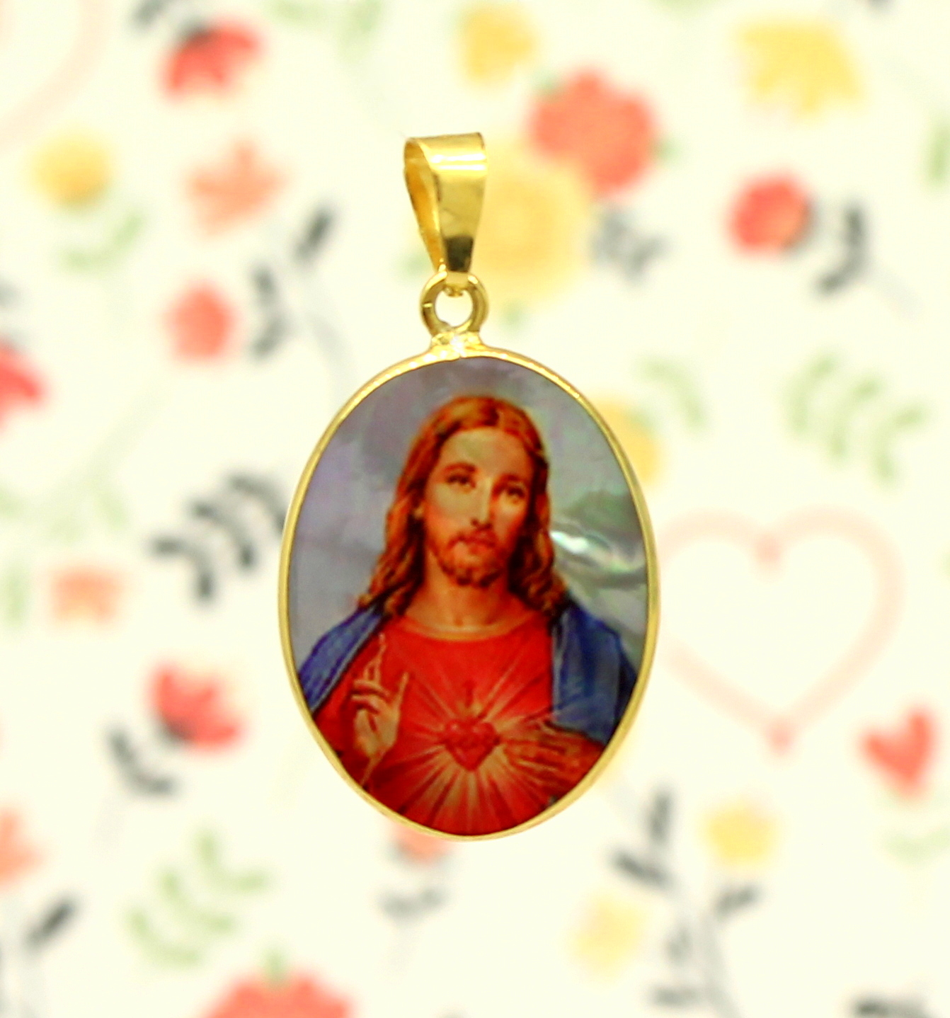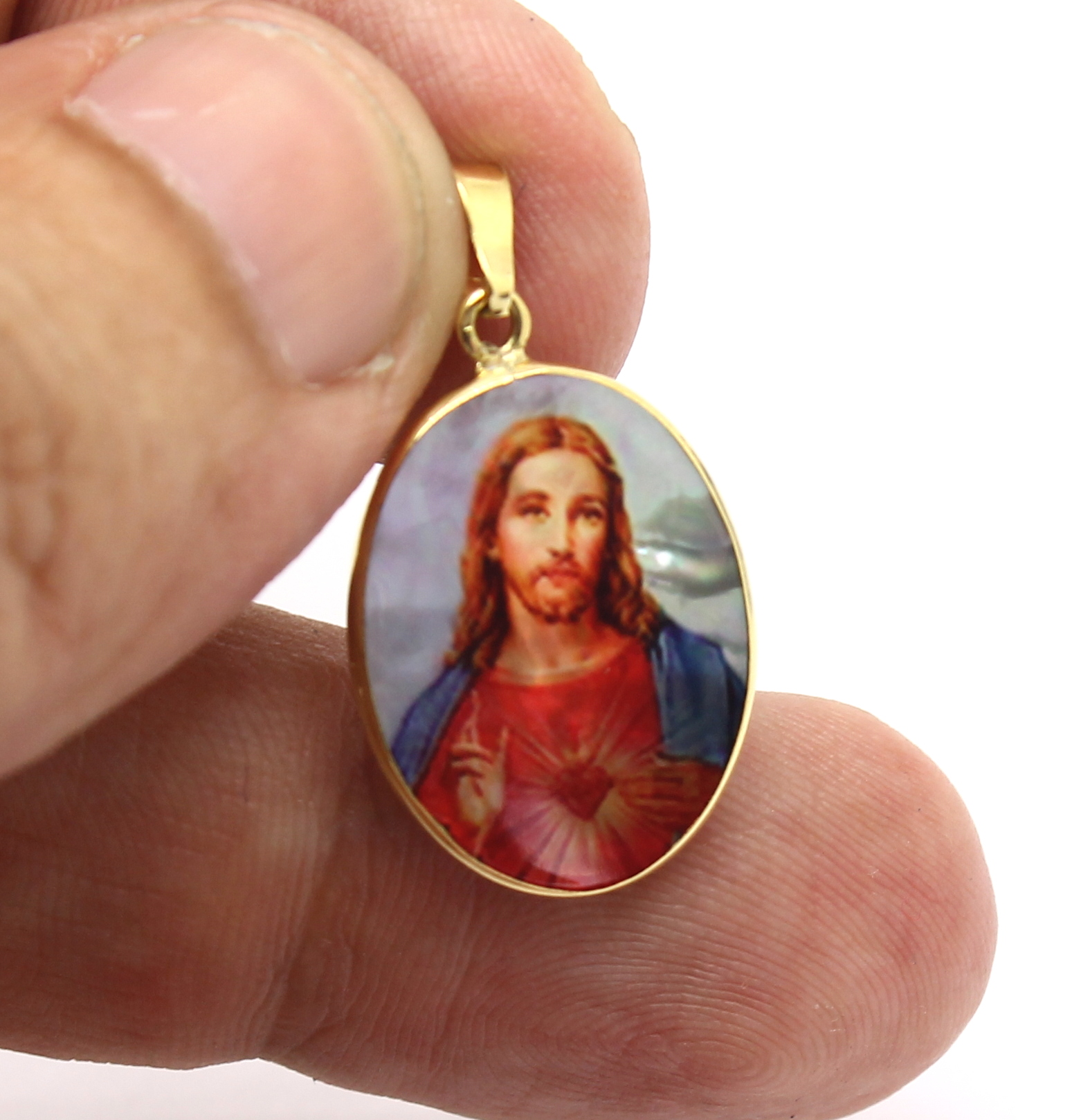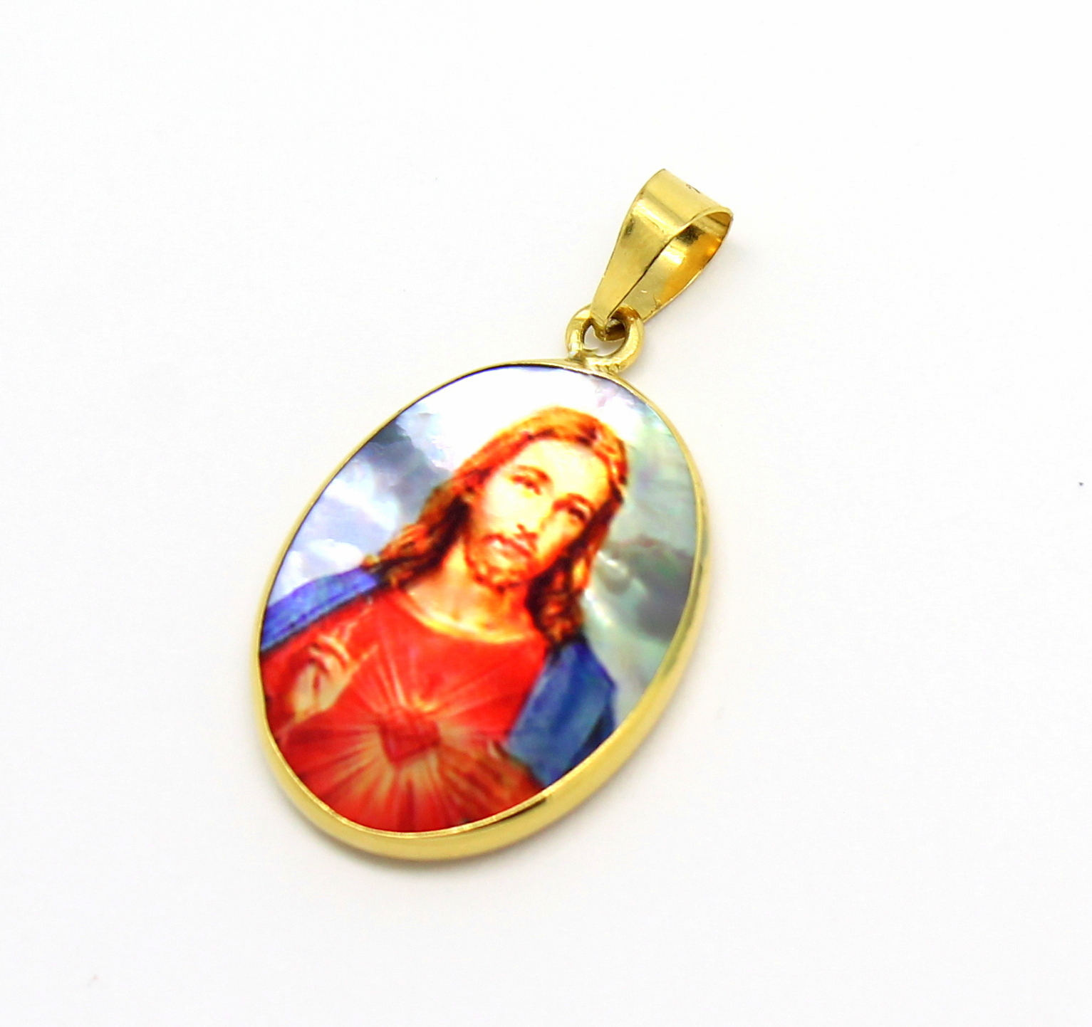 Pingente Sagrado Coração de Jesus Madrepérola Ouro 18k 750
