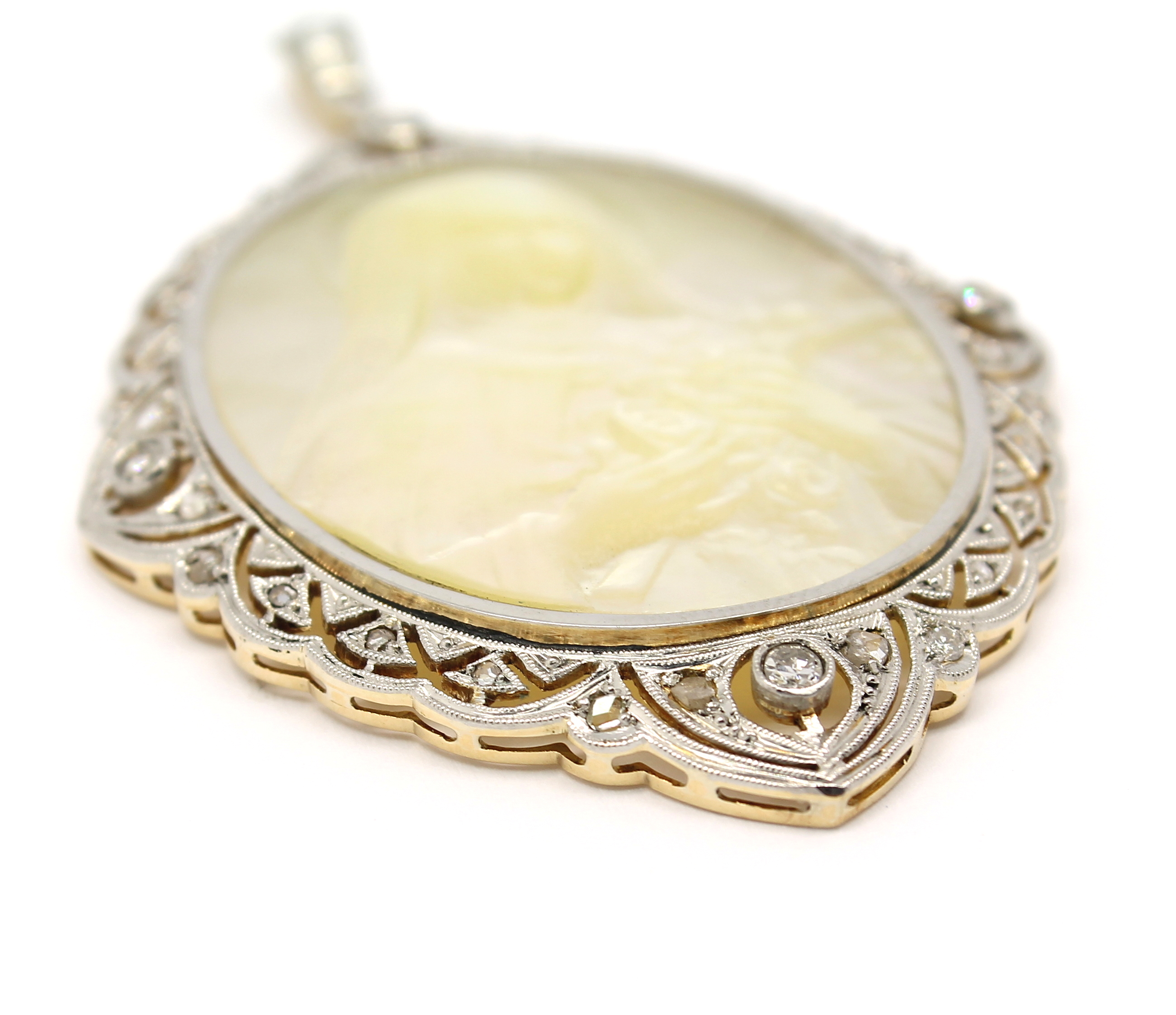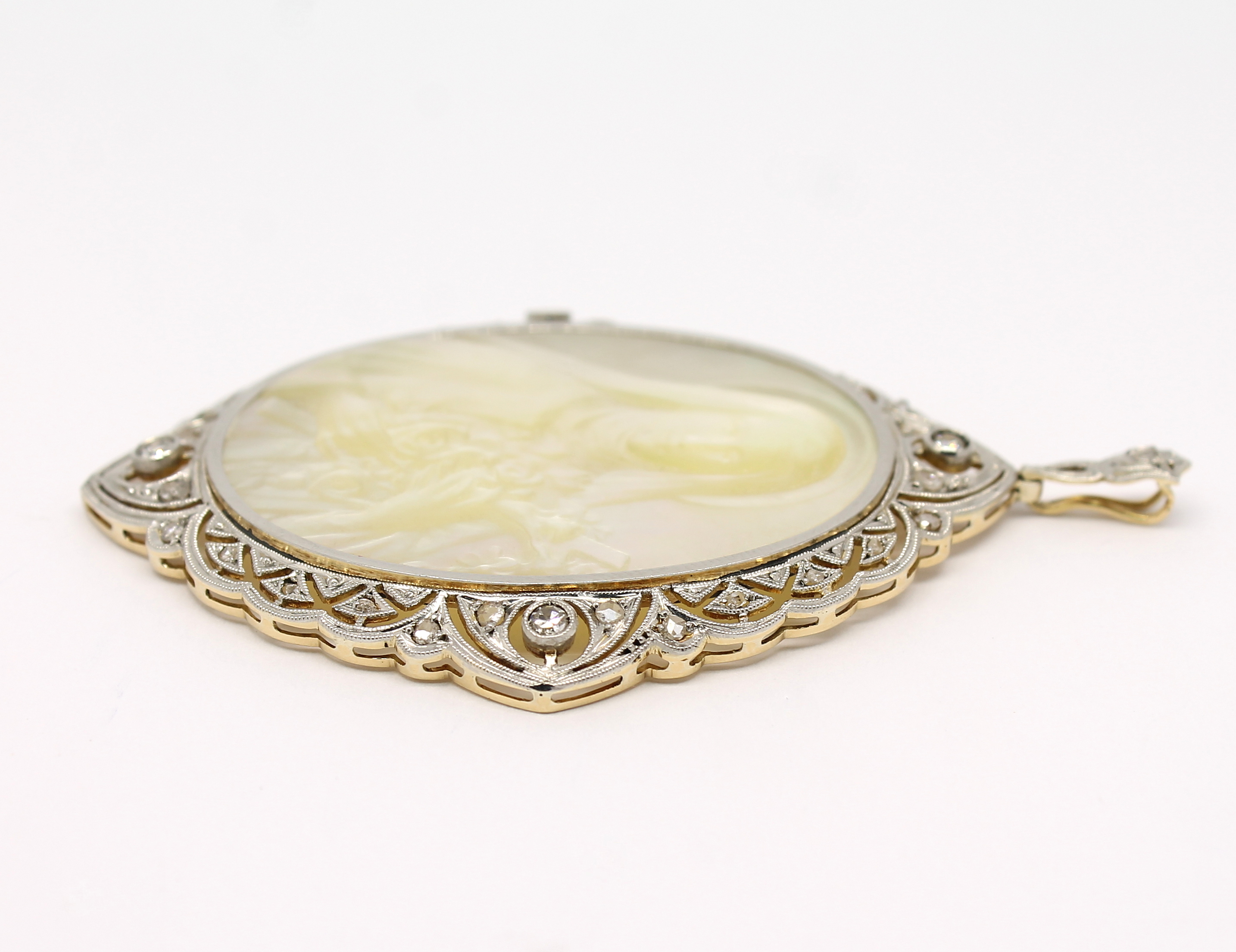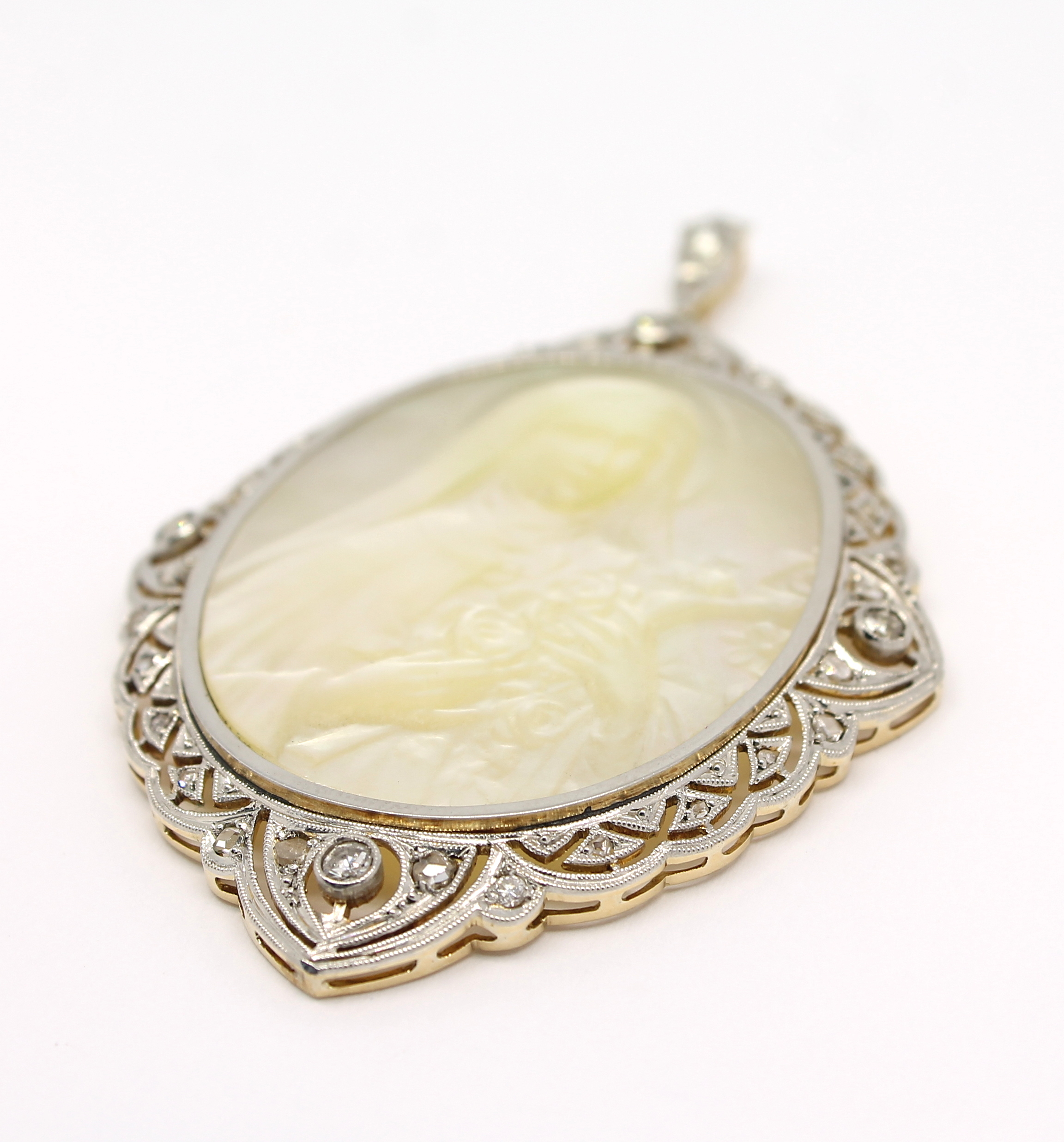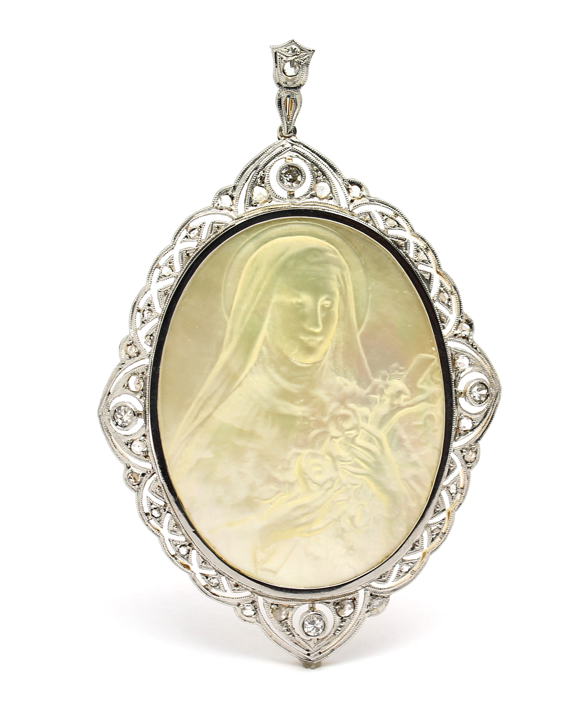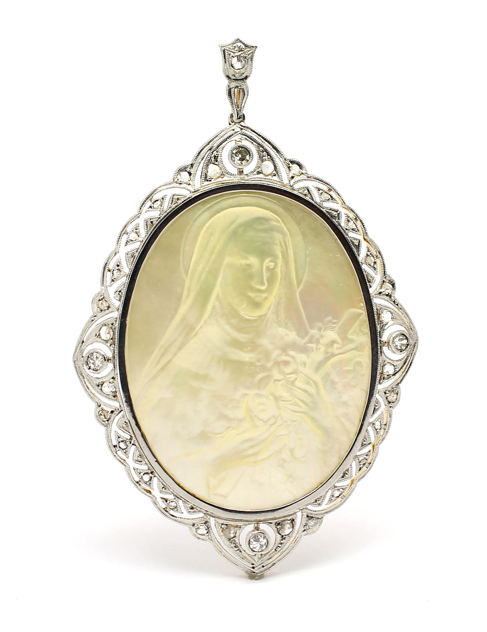 Pingente Santa Teresinha Madrepérola Diamantes e Ouro 18k 750
