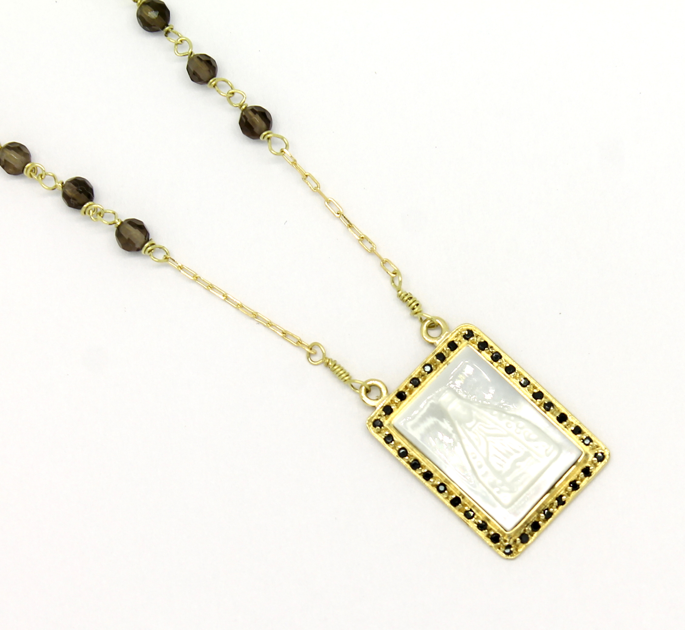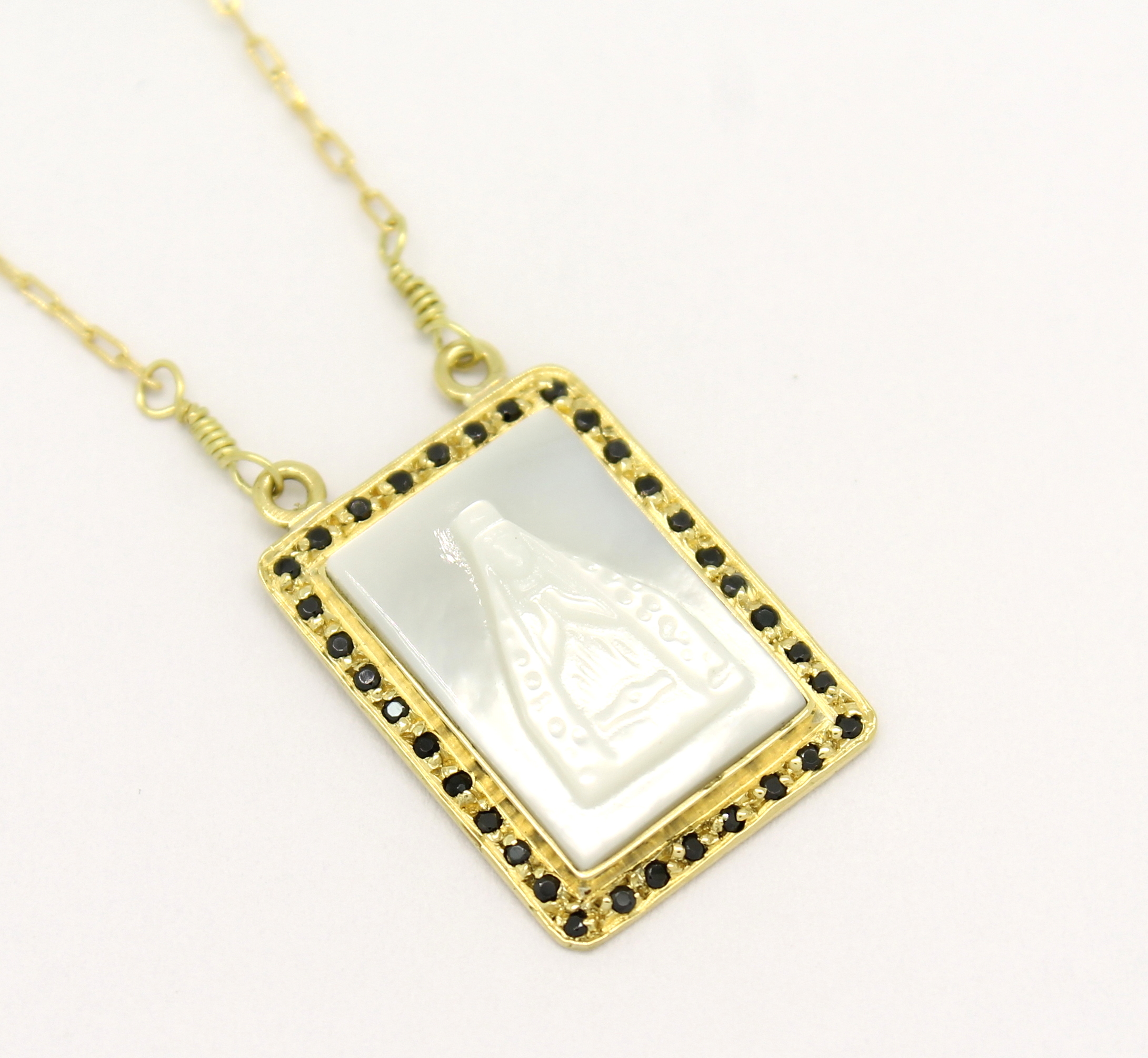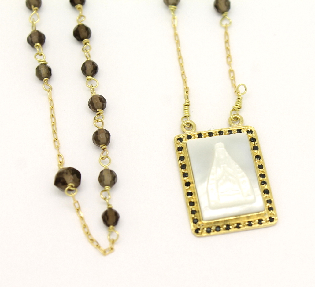 Terço N. Sra Aparecida Madrepérola Ônix Espinélio Ouro 18k 750